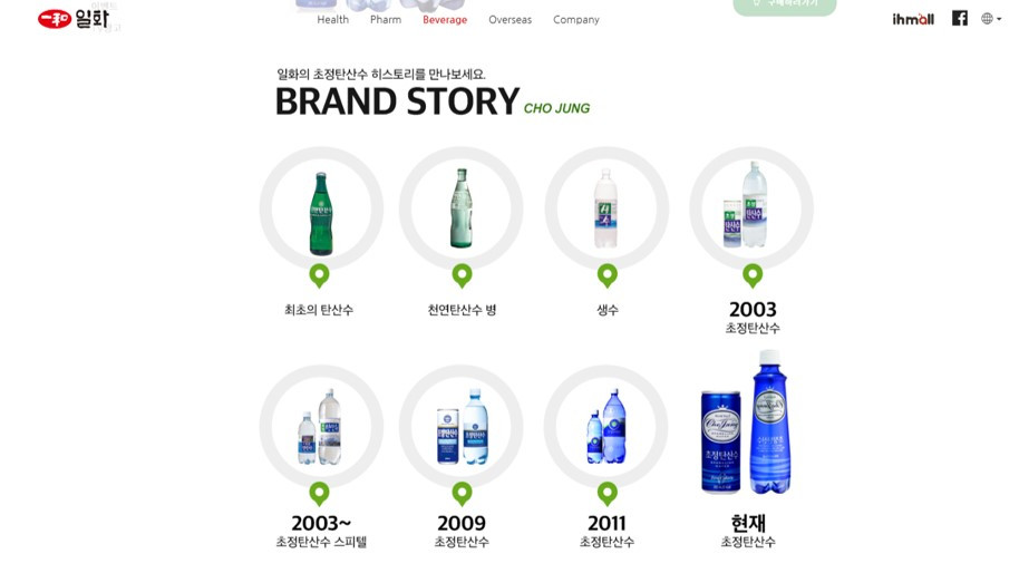 하지만 초정 탄산수 홈페이지(일화 홈페이지의 일부 페이지)를 보면 관련된 다양한 스토리들을 전혀 알 수가 없다. 내부적 여력이 되지 않거나 저작권과 관련된 혹은 다른 무언가의 문제가 얽혀 있기 때문에 진행하지 못하는 상황이라면 그 상황 자체가 너무 안타깝겠지만 그렇지 않다면 세계 3대 광천수인 데다 역사적 스토리까지... 세계적인 탄산수가 될 수 있는 브랜드 꺼리가 너무 충분하지 않나 싶다.