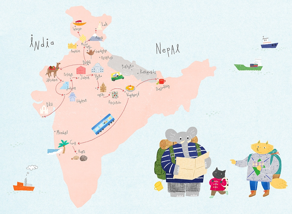 델리 - 마날리 - 레 - 맥그로드 간즈 - 찬디가르 - 푸쉬카르 - 바라나시 - 룸비니 - 포카라 - 고아 - 함피 - 뭄바이 -방콕 - 크라비 - 피피 -푸껫