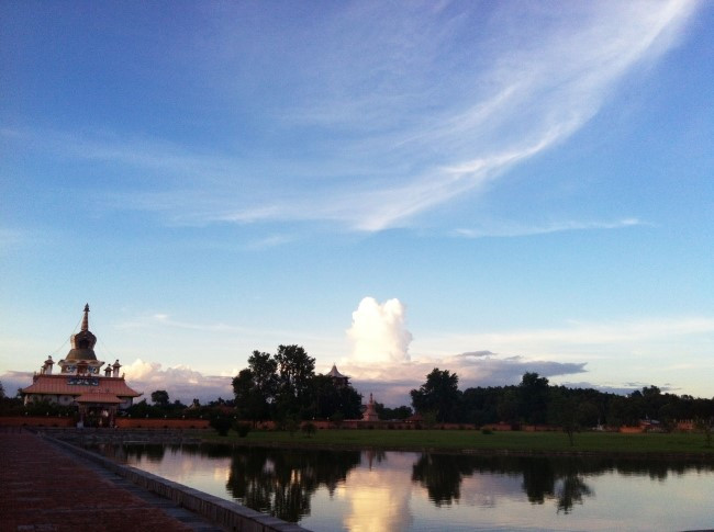 몸의 열은 떨어졌지만 타는 목마름이 해결된 건 아니었다. 슈퍼는 숙소에서 15분은 더 걸어야 했다. 별거 아닌 거리가 지옥 같은 느낌이다. 이미 3시부터 물을 마시지 못했다. 슈퍼에 도착하자마자 2리터짜리 물을 사서 단숨에 들이켰다. 친구는 생명수를 마시고 이내 곯아떨어지고 나는 해가 지기 전, 피곤한 몸을 일으켜 노을이 지는 룸비니의 절들을 천천히 구경하며 산책을 했다. 사방이 소음으로 가득하던 인도에서 넘어와 바람소리에 흔들리는 억새 소리만 들리니 세상 마음이 편안해진다.
