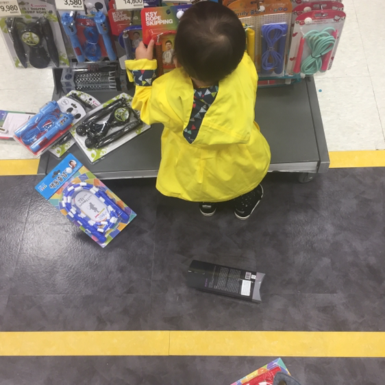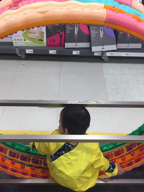 율이가 특히 좋아하는 곳은 마트인데 늘 처음 와보는 것처럼 모든 사물에 반응하고 놀라워하는 모습이 신기하고 사랑스럽다.