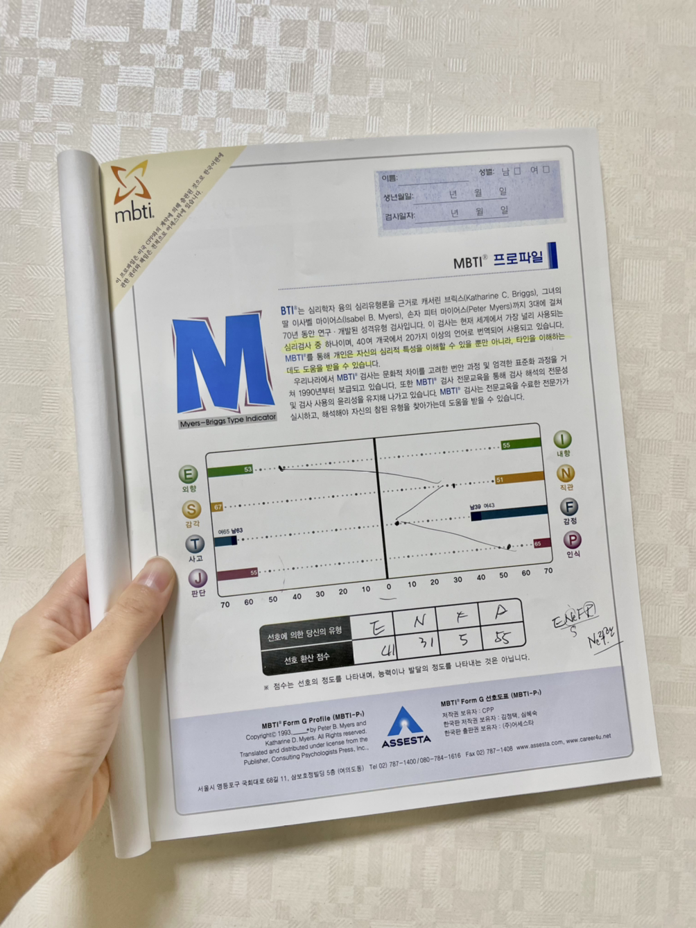 MBTI 정식 테스트를 2번 했었고, 두 번 다 ENFP가 나왔었다. 물론, 인터넷에 떠도는 재미로 만든 테스트들도 한결같이 ENFP로 나오긴 하지만. ㅎㅎㅎ MBTI는 지금 유행처럼 재미로 많이들 하고 있지만, 실제로 이 MBTI 테스트의 목적은 개인의 심리적 특성을 이해하고, 타인을 이해하는데 도움을 받기 위함이다. 무엇이 좋고 나쁜지를 판단하는 게 아닌, 각자가 자신이 가진 특성을 이해하고 장점을 살리고, 단점을 보완할 수 있는 용도로 사용하면 좋을 것 같다.