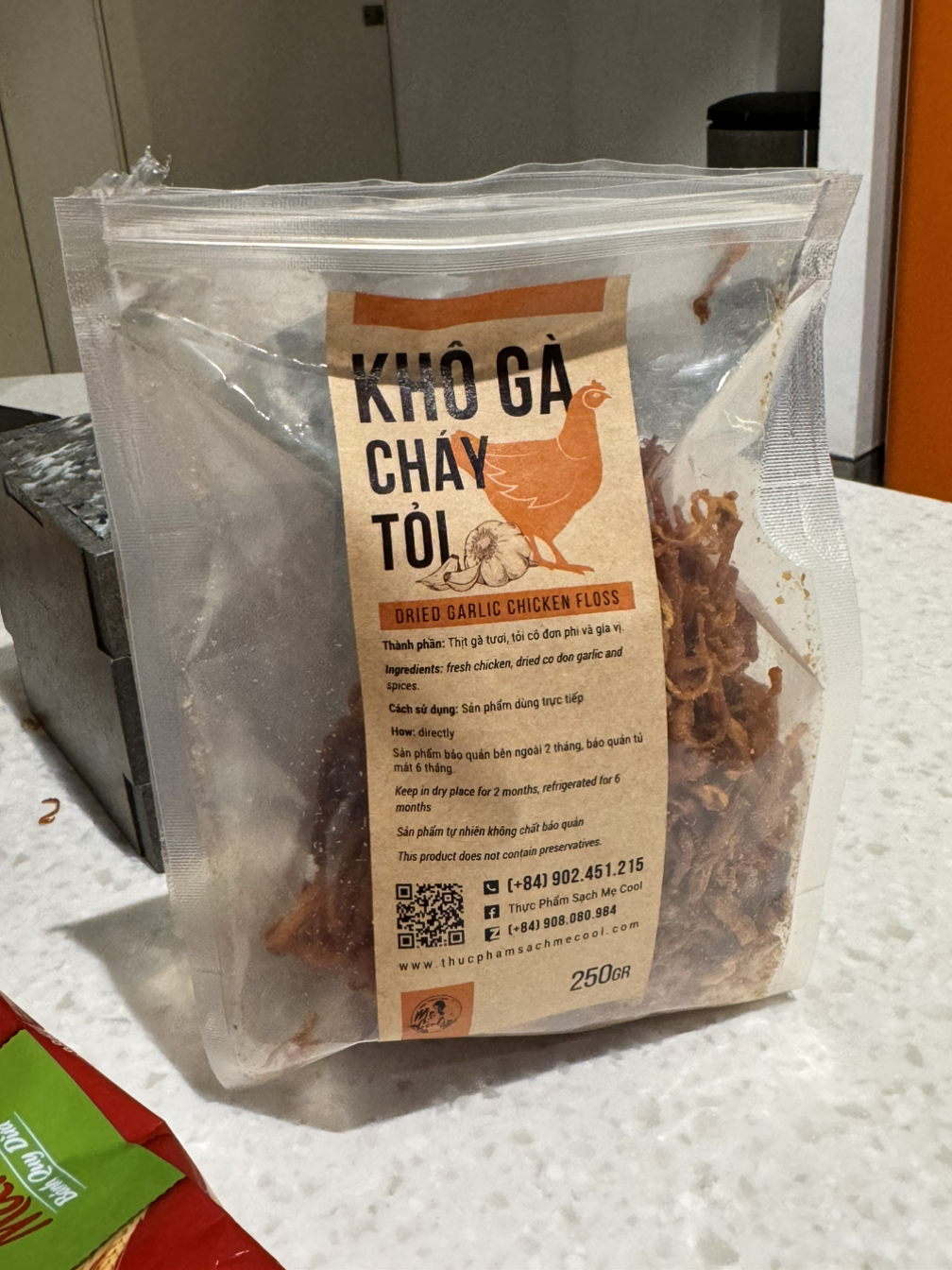 그렇게 꽤 시간이 흐르고, 많은 사람들이 자리를 떠난 후 테이블에는 짝꿍과 나 그리고 한 명의 여행자가 남게 되었다. 자연스럽게 우리는 인사를 나누며 서로 먹고 있던 음식을 권했다. 그 여행자는 닭 그림이 그려져 있는 봉투에 들어있는 무언가를 먹고 있었는데, 나눠줘서 먹어보니 말린 닭고기였다. 살짝 매콤하면서도 짭짤한 게 딱 맥주안주였다. 그렇게 음식으로 시작해서 우리는 어쩌다 호치민에 와 있는지, 무슨 일을 하는지 등등 이런저런 이야기들을 나누었다.