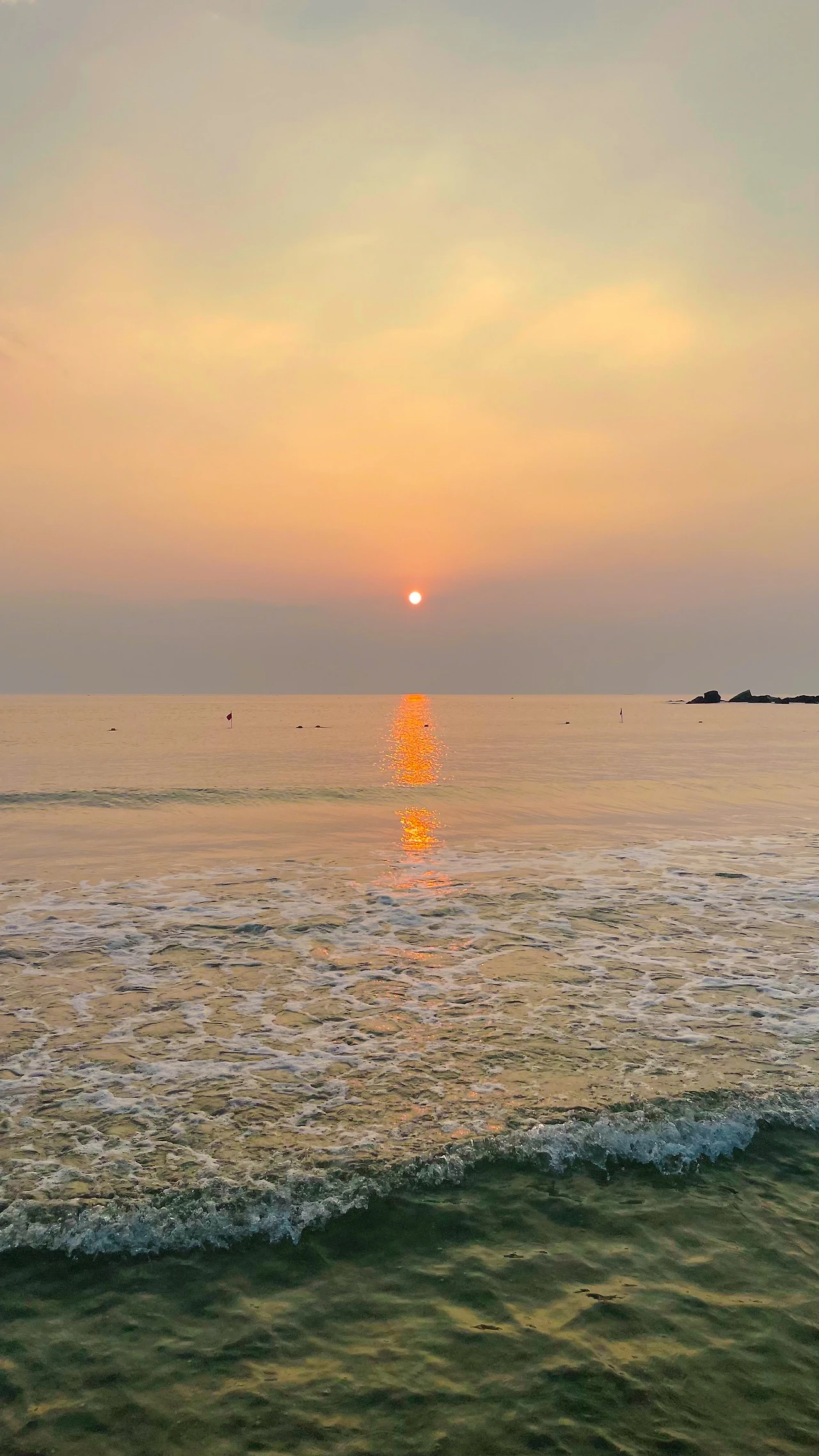다음날 새벽 일찍 알람을 맞춰두고 다섯시에 해변으로 나섰다. 바다색이 하얀색에 가까웠다. 분명 전날 낮에만 해도 서핑을 하며 새파랗게 짙은 바닷물이 무서워했는데, 파도도 없는 잔잔한 바다가 평온했다. 아주 오랜만에 보는 일출이었다. 여섯시가 되는 동안 점점 붉어지는가 싶더니 눈 깜빡할 새 새빨갛고 동그란 해가 아주 작은 모습으로 쏙 내밀었다.