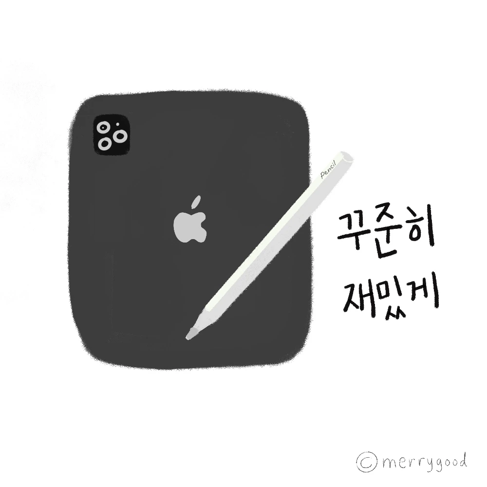 요즘 나는 매일 아이패드로 그림을 그린다. '디지털 드로잉'에 관심이 생겨 아이패드와 애플펜슬도 구매했다. 드로잉 책을 보며 따라 그리는 수준에 불과한 나의 가장 최신 리추얼이다. 매일 작은 그림 하나를 완성해 거의 아무도 보지 않는 블로그나 인스타에 올린다. 난 완성 후 잊지 않고 동생에게 카톡으로 전송한다. 구독자는 원하지도 않지만.