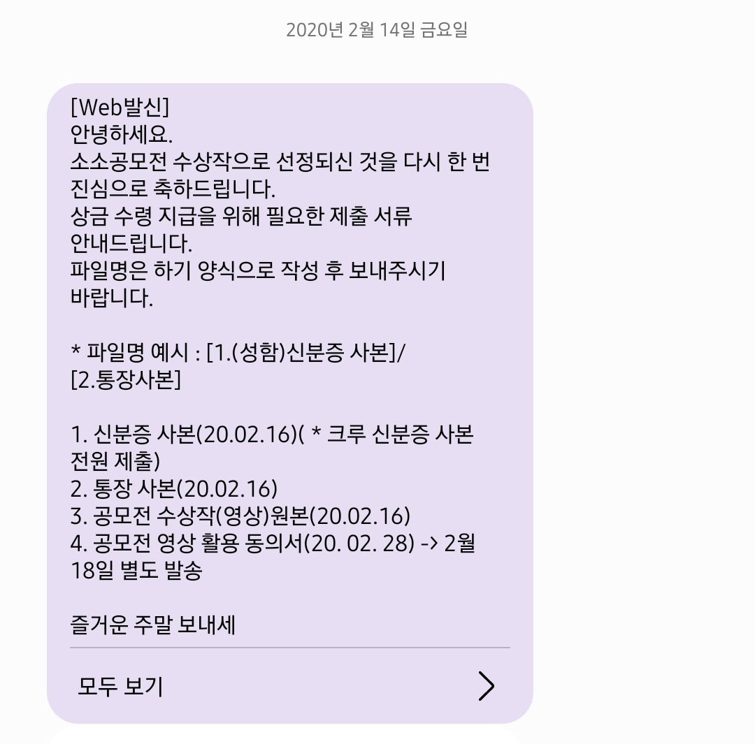 그리고 겨울이 되었다. 한국관광공사에서 진행하는 영상 공모전에 지원했다. 그로부터 2주 뒤, 이번에는 소상공인의 상품을 홍보하는 소소 공모전에 지원하였고 수상의 결실을 맺으며 2019년을 마무리하였다.