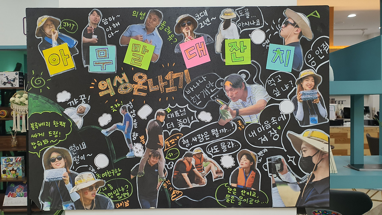 의성에서 함께한 인연들이 모두 담긴 보드의성에서 생활을 하면서도 퇴사에 대한 마음은 확고했다. 결국 서울로 돌아가면 마주해야 할 현실이었기 때문이다. 그런데 생각지도 못한 새로운 소식을 전해 들었다. 상사가 다음 달부터 몇 개월간 휴직을 한다는 것이었다. 일단 무작정 퇴사하려고 했던 마음을 잠시 내려놓고 조금 힘내서 다녀보기로 했다. 하지만 다시 다니면서도 또다시 깊은 생각에 잠겼다. 상사의 부재 기간은 단 몇 개월뿐. 지금 내 상태가 잠깐 괜찮아진 것처럼 보이지만, 결국 마주하게 될 현실은 눈에 보이듯 뻔했다. 겨우 괜찮아진 내 상태를 다시 극한으로 몰아가고 싶지 않았다.