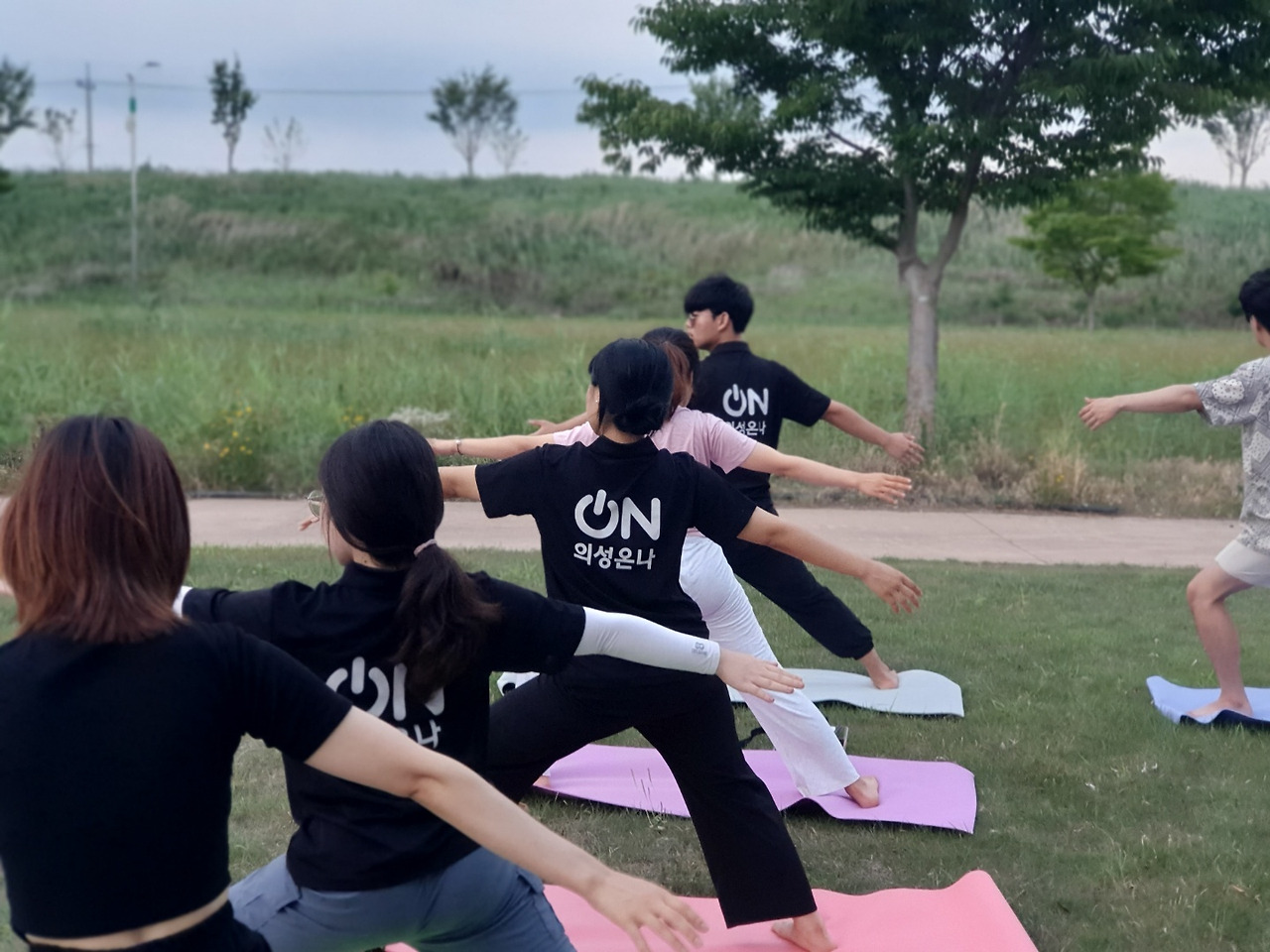 잔디밭에서 요가