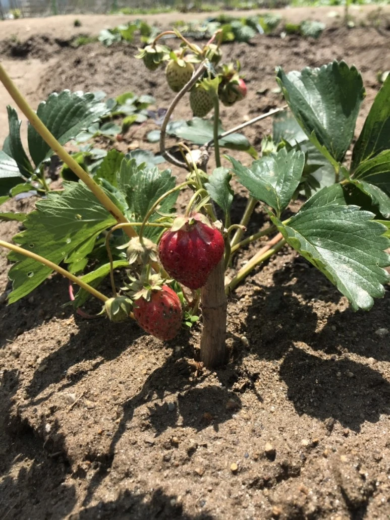 새하얀 꽃은 어느새 엄지손톱만한 크기의 열매가 되었고, 딸기 크는 모습을 보느라 텃밭에 가는 날이 기다려지곤 했다. 생각했던 것보다 딸기 모종은 훨씬 더 잘 자라주었고, 딸기도 주렁주렁 열렸다. 모종을 심은 지 한 달쯤 지나자 알이 굵어진 딸기부터 빨갛게 물들기 시작했다.