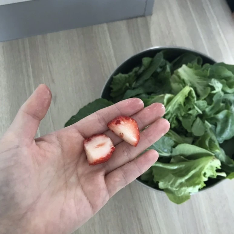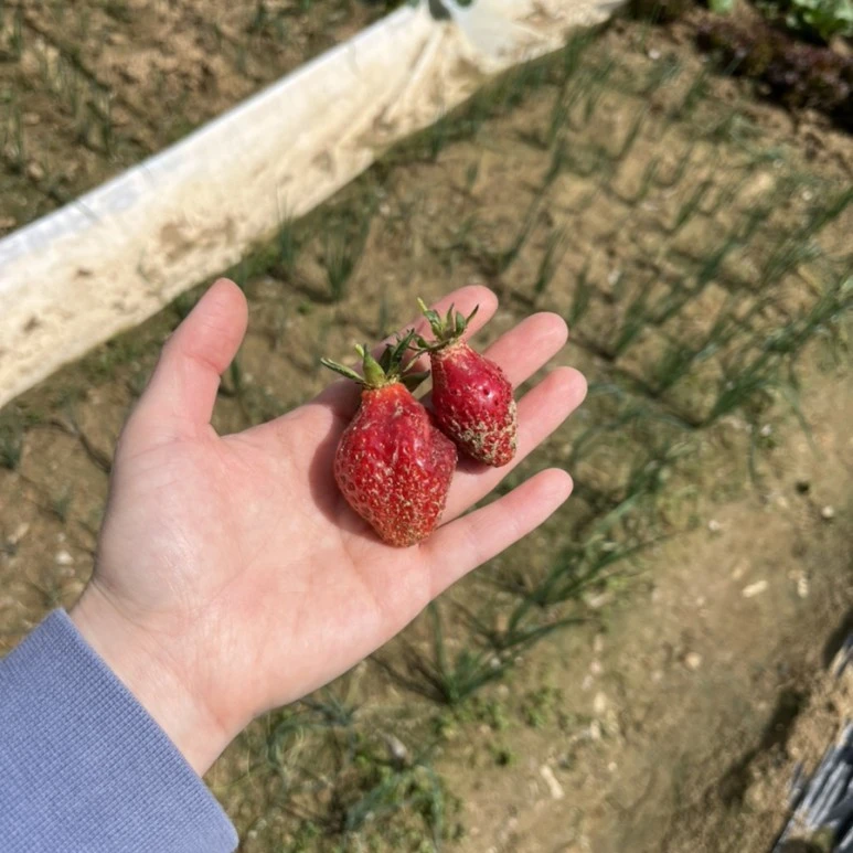제일 예쁘고 큰 딸기를 신중하게 골라 줄기에서 톡 떼어내어 조심스럽게 물로 씻었다. 양손으로 딸기를 잡고 큼직하게 한 입 베어문 순간에 느낀 달달한 감동은 지금도 잊을 수가 없다. 마트에서 사다 먹은 그 어떤 딸기와도 비교할 수 없는 향긋한 딸기 향이 입안 가득 퍼졌고, 아주 달콤했다. 다 먹고 난 이후에는 코끝에 딸기 잔향이 오래도록 맴돌았다. 노지에서 자란 딸기는 맛이 없다고 들어와서 별 기대를 안 했는데 내 인생 최고로 맛있는 딸기였다.
