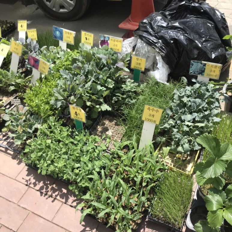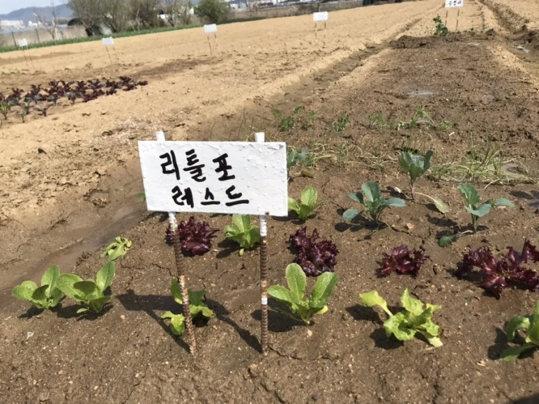 어떤 밭은 쌈 채소만으로 5평짜리 밭을 꽉 채우기도 하고, 어떤 밭은 열무 씨앗을 잔뜩 뿌려서 귀여운 새싹들이 가득 나오기도 하고, 또 어떤 밭은 고추만 가득, 대파만 잔뜩. 어떤 밭은 아이들의 이름이 적힌 푯말이 사이좋게 세워져 있고 허브에 꽃 화분까지 심겨 있기도 하다. 방문할 때마다 조금씩 변하는 이웃들의 텃밭을 구경하는 재미가 쏠쏠하다.