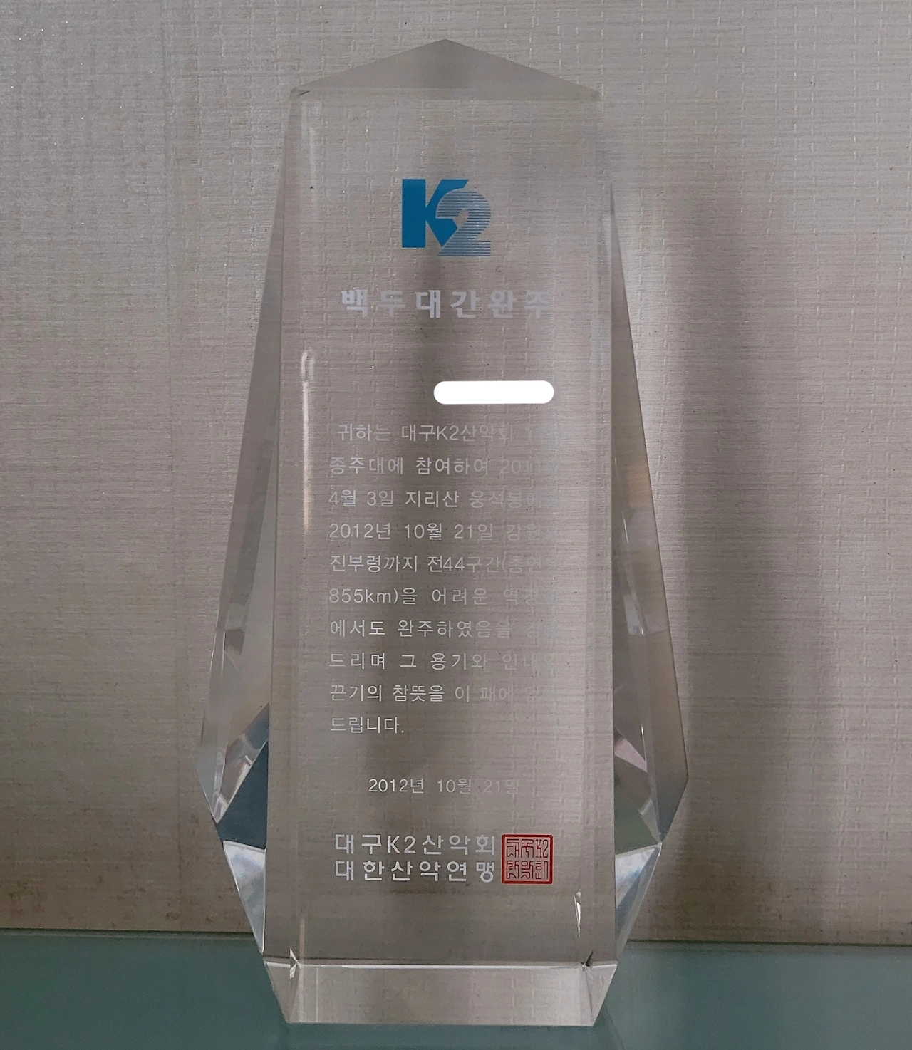 엄마는 마라톤뿐만 아니라 등산, 수영, 자전거도 좋아하신다. 전국에 가보지 않은 산이 거의 없다. 백두대간* 완주하셔서 기념패도 받았는데, 그 후에도 등산을 꾸준히 하고 계신다. 수영도 20년 넘게 꾸준히 하고 계신다. 라이딩하신 지도 5년이 넘었다. 어느 날 자전거를 타고 싶다고 하시기에 그냥 동네에서 타고 다닐 자전거를 말씀하시는 줄 알았다. 그런데 라이딩용 자전거를 구매하시더니 라이딩 모임에 나가기 시작하신 것이다.