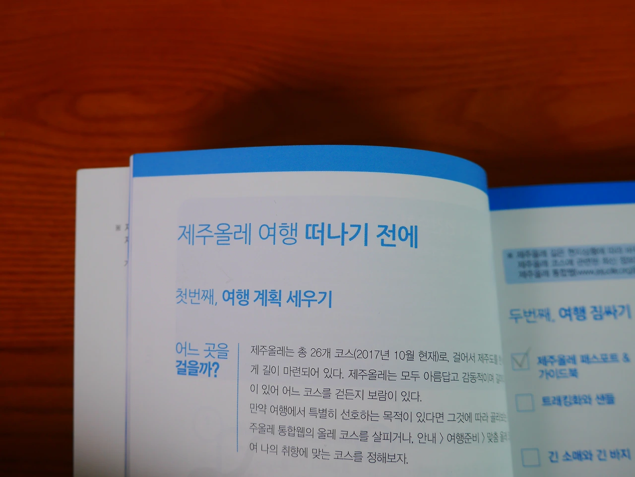 가이드북은 말 그대로 제주 올레길을 소개하는 안내책자인데요, 단순히 코스 안내뿐 아니라 올레길 투어 전 준비해야 할 사항, 주변 관광지, 여러 가지 꿀팁 등등이 자세히 안내되어 있어서 실제로 여행하는 분들에게는 큰 도움이 될 것 같아요.
