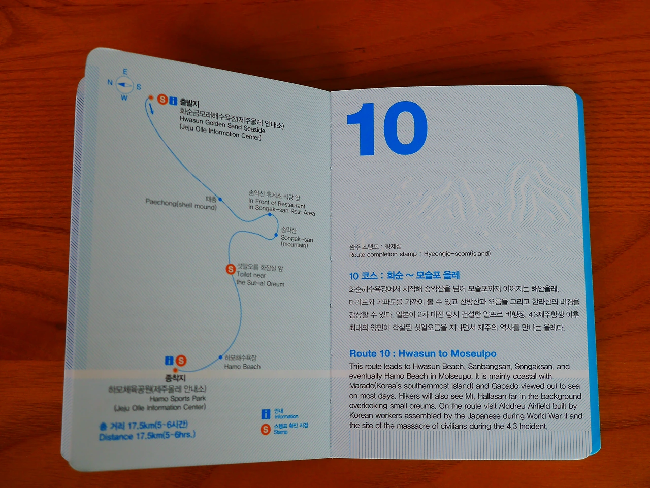 패스포트는 올레길 각 코스마다 비치된 도장을 찍어서 모으는 여권 형식의 수첩이에요. 코스별 도장을 하나하나 찍으면서 인증도 할 수 있고, 모든 코스 도장을 모으면 올레길 완주증도 발급해 준다고 하네요! (꼭 한 번에 다 돌아야 하는 건 아니고, 여러 번에 나눠서 찍더라도 다 모으기만 하면 받을 수 있어요.)