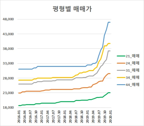 그때 그분은 갑자기 소형들을 다 판다. 그리고 30평형 아파트를 집중적으로 매입하기 시작한다. 당시에 소형이 오르면서 30평형 아파트와 갭 차이가 3~4천만 원 밖에 되지 않은 것을 보고 갈아타기를 한 것이다. 정말 투자의 신이었다. 그렇게 매입하고 얼마 되지 않아 30평형 아파트가 가파르게 상승을 한다. 그리고 부동산 상승장에서 소형은 중. 대형에 비해 상승이 둔화된다.