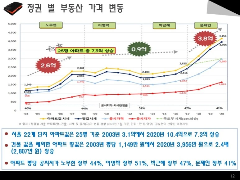 아래는 정권에 따라 부동산의 변동을 나타낸다.