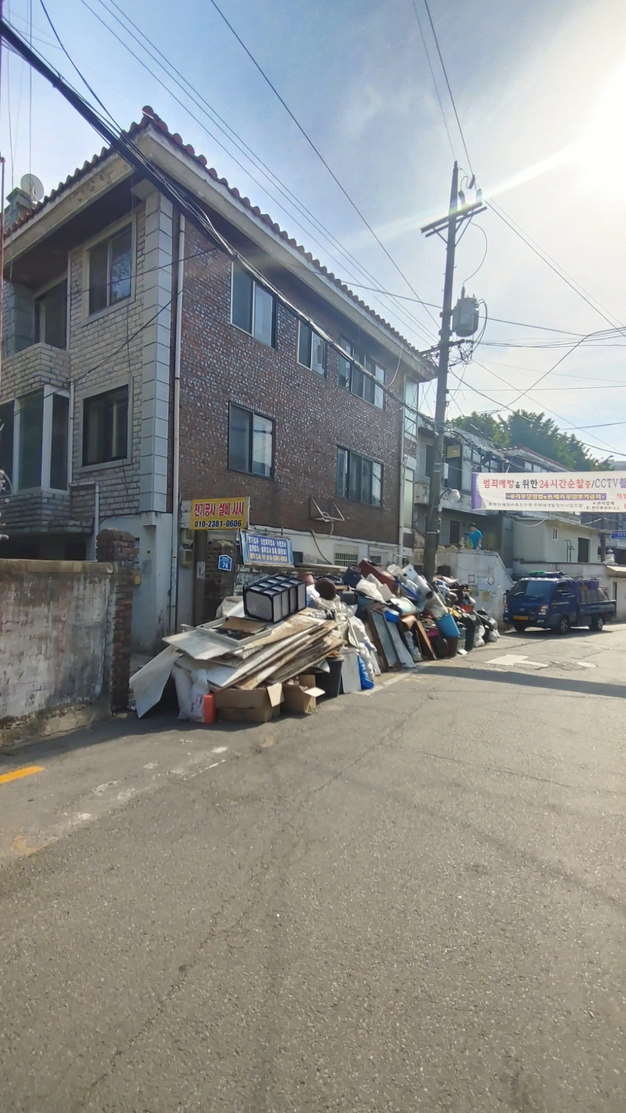길가에는 이사로 버리고 간 쓰레기로 수북이 쌓여 있다.