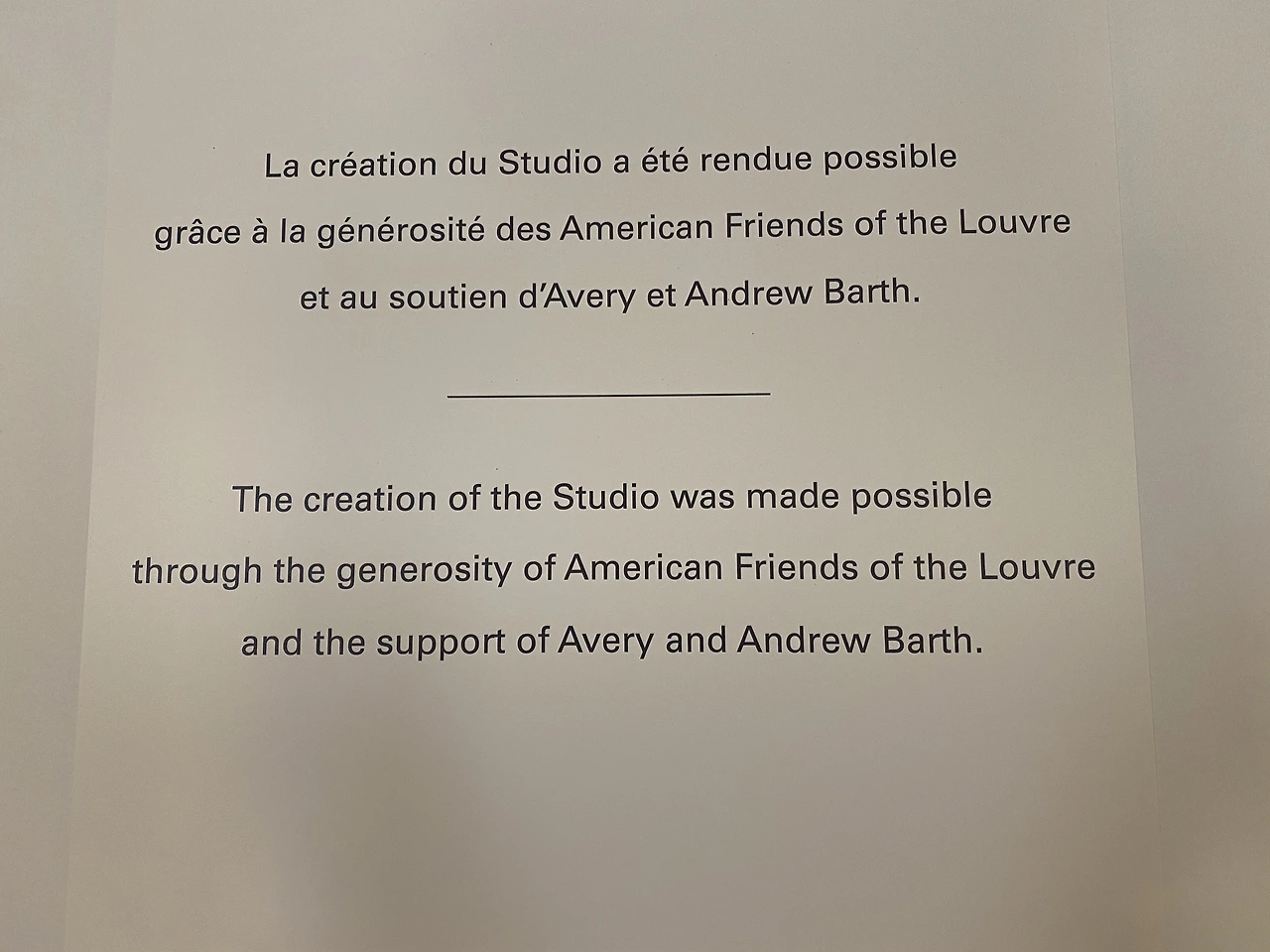 스튜디오는 기부에 의해 만들어졌다. 기부자 명단을 벽에 걸어뒀다. 루이비통, 디올, 까르티에 등 대기업도 있고 개인도 있다. 미국에서 기부를 하기도 했다. 화장실은 TOTO라는 그룹에서 기부했다.