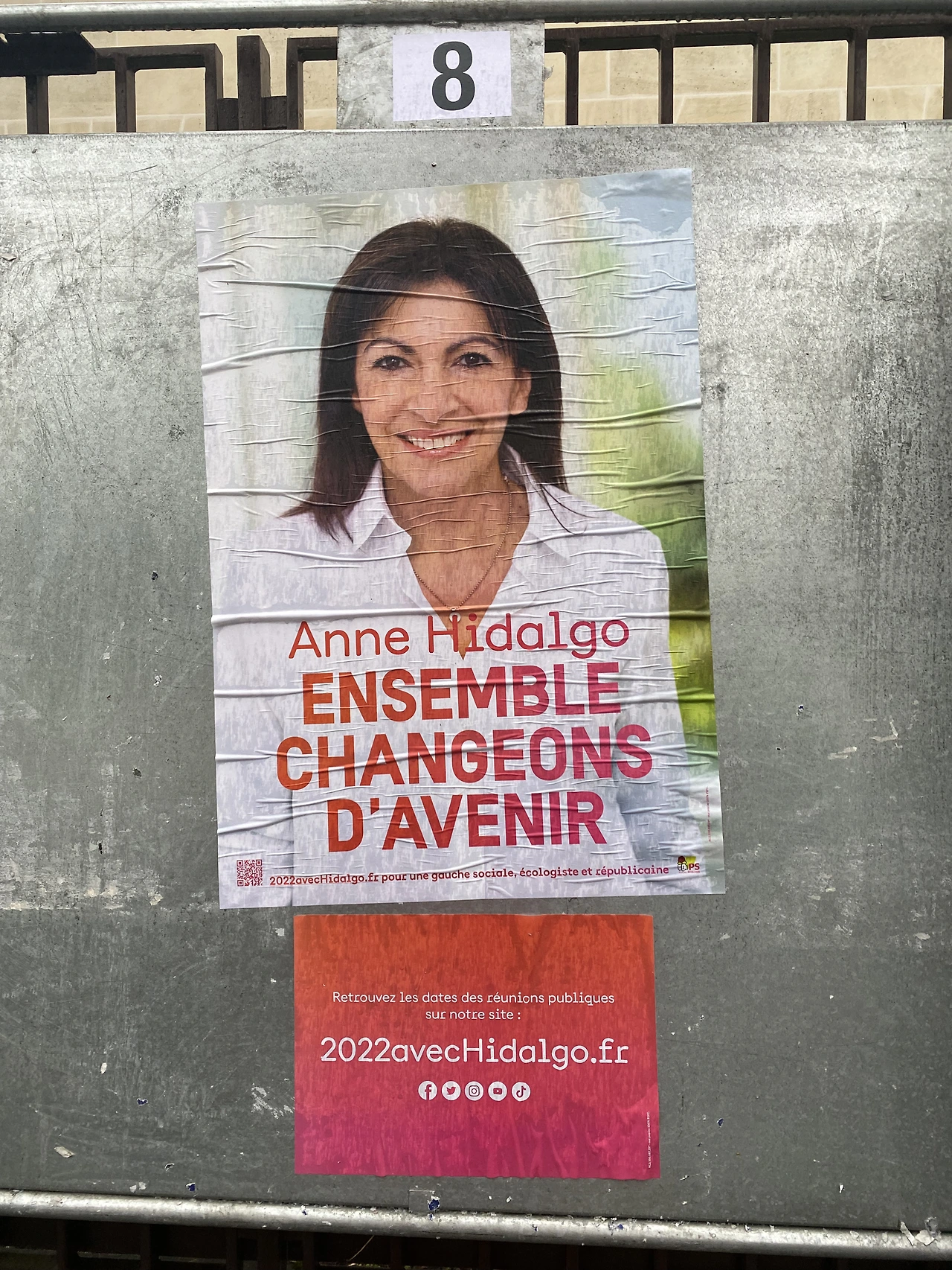 매스컴에서 그녀를 마주할 때마다, 그녀가 항상 하고 다니는 목걸이가 내 눈에 유난히 들어왔다. 이달고 시장은 귀걸이를 잘 착용하지 않고, 똑같은 목걸이는 늘 착용하고 있다. 나는 여성 리더들을 볼 때, 헤어 스타일, 패션 스타일, 주얼리 등을 관심 있게 살펴보는 편이다. 그리 화려해 보이지 않는 평범한 목걸이인데, 그녀의 영상 및 사진을 많이 찾아보니 오랫동안 그 목걸이만 늘 착용하고 있었다. 안 한 적이 없는 듯 보였다. 자신을 지켜주는 그런 의미 있는 목걸이 같다. 벽보를 통해 그 목걸이를 더욱 크게 볼 수 있었다. 어머니가 물려준 것인가? 어떤 의미가 든 목걸이인지 궁금하다. 미국 부통령 카맬라 해리스도 늘 착용하는 진주 귀걸이가 눈에 띄었다. 한창 미 대선 당시, 인도계 미국인인 그녀가 매스컴에 자주 나왔고 같은 여성으로서 매우 관심 있게 지켜본 적이 있다. 그때 당시 주얼리 정치라고 해서 그녀는 늘 같은 주얼리를 하고 나왔다. 진주 마니아인지 주로 진주를 많이 착용했다. 근데 진주 귀걸이를 늘 똑같은 것을 하고 나왔다. 그때 당시 나는 '여성 리더들은 자신이 특별히 아끼는, 자신을 보호하고, 지켜주는 그런 주얼리를 하나씩 간직하고 있나 보다'라고 생각했다. 나는 주얼리를 즐겨 착용하는 편이다. 귀걸이를 좋아해서 다양하게 소지하고 있으며, 그다음으로 반지, 그다음으로 목걸이를 즐겨 착용한다. 왠지 주얼리 하나 착용함으로써 분위기도 한층 살릴 수 있고, 기분 전환도 쉽게 할 수 있어서 좋아하는 편이다. 나는 늘 하고 다닐만한 내게 특별한 의미가 있는 주얼리가 있는가...? 벽보에는 함께 미래를 바꾸자(Ensemble changeons d'avenir)라고 적혀있다. 그녀는 생각보다 현재 지지율이 저조하다. 아마 가장 낮은 것으로 집계되고 있다. 개인적으로 가장 많이 애착이 가는 후보였는데, 지지율이 저조해서 아쉽다.