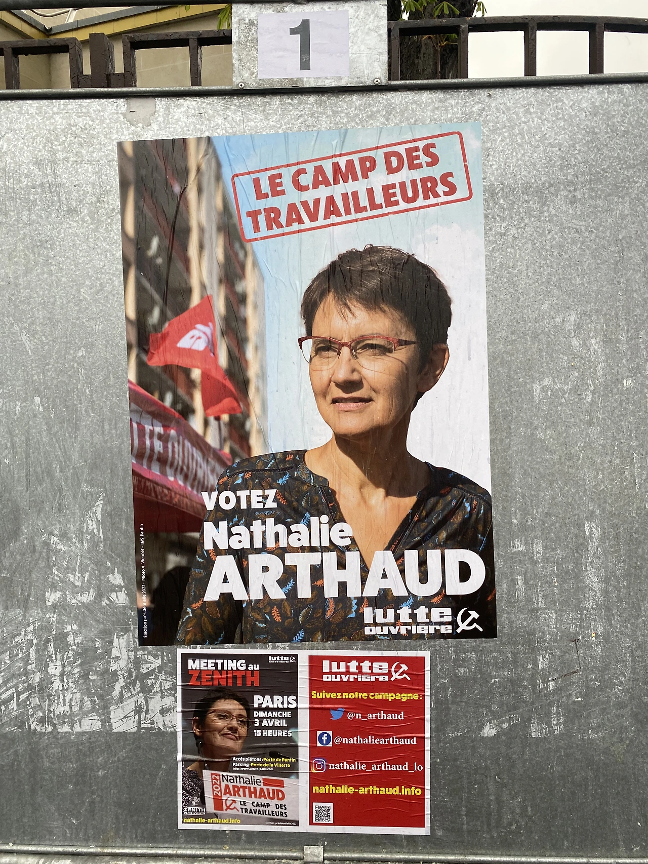 기호 1번 : 나탈리 아르소(Nathalie Arthaud), 노동당(Lutte ouvrière)