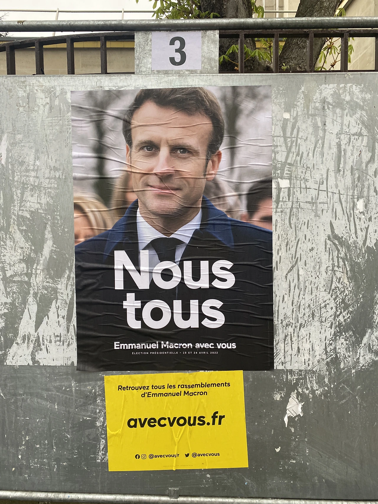 1977년 12월 21일 아미앵에서 태어났다. 2017년 5월 14일부터 프랑스 공화국 대통령 역임하고 있다. 프랑스 최연소 대통령이다. 2004년 국립행정대학원 졸업 후 재무 장관으로 역임했다. 중도에서 중도우파 사이에 있다고 보면 된다. 벽보에는 우리 모두(Nous tous)라고 크고 강렬하게 적혀있다. 당신과 함께하는 에마뉘엘 마크롱(Emmanuel Macron)이라고 적음으로써 함께하는 것을 강조한다. 그가 대통령을 역임하는 동안 많은 일들이 있었다. 노란 조끼 시위, 팬데믹 등... 최근 러시아 우크라이나 전쟁까지... 유류세 인상 및 부유세 인하 등으로 시작된 노란 조끼 시위 당시, 지지율이 급격히 하락하기도 했다. ENA 폐교 결정, 전국을 다니며 시민들을 만나서 대화하고 소통하며(그 과정에 시민에 뺨을 맞기도 했는데, 그 순간 여유를 보이기도 했다), 젊고 패기 있는 모습을 내보였다. 팬데믹 기간 동안, 위기관리에 적극적으로 대처하면서 리더십에 긍정적인 평가를 받으면서 다시 지지율이 안정됐다. 부인 브리짓 여사와 고등학교 교사와 제자의 관계로 처음 만났는데 24살이라는 나이를 뛰어넘어 결혼까지 했다. 심지어 고등학교 친구의 엄마였던 브리짓 여사. 마크롱 대통령에게는 거의 첫사랑이나 다름없었을 것 같다. 그는 자신의 부인을 살뜰히 챙기는 모습이 인상 깊다. 둘의 사랑을 보고 있으면, 마크롱에게 있어 그녀는 사랑하는 사람이자 정신적 지주였지 않았을까 싶다. 사랑이 모든 것을 뛰어넘듯이 그녀의 사랑을 토대로 삶을 자신 있게 살아가지 않았을까 뭐 그런 생각을 혼자 해본다. 젊고, 영어도 잘하고, 언변도 능하다. 부모님이 의사였고, 명석한 두뇌를 가졌다고 한다. 부모님은 이혼했다. 현재 지지율이 가장 높은 후보이다.