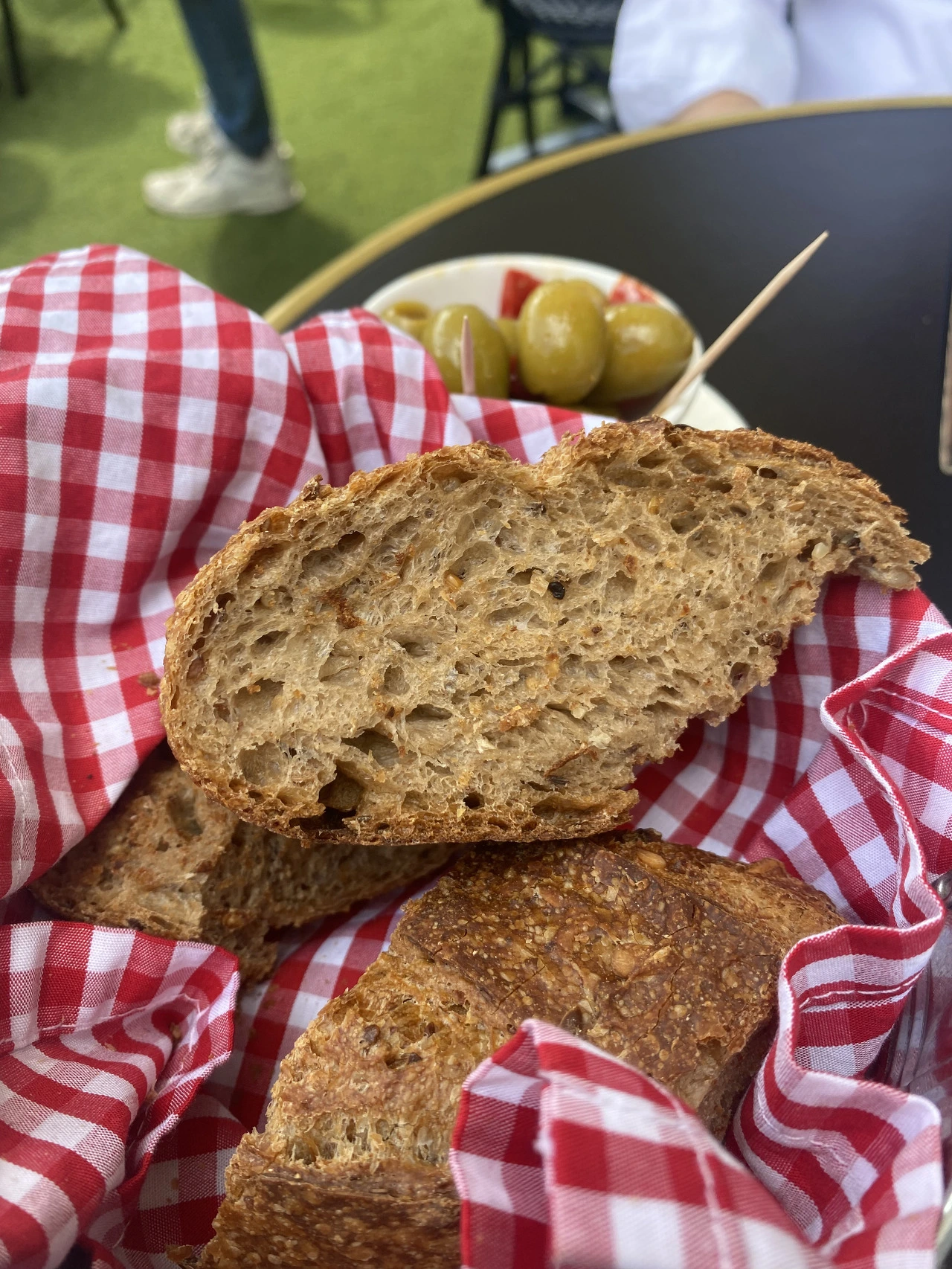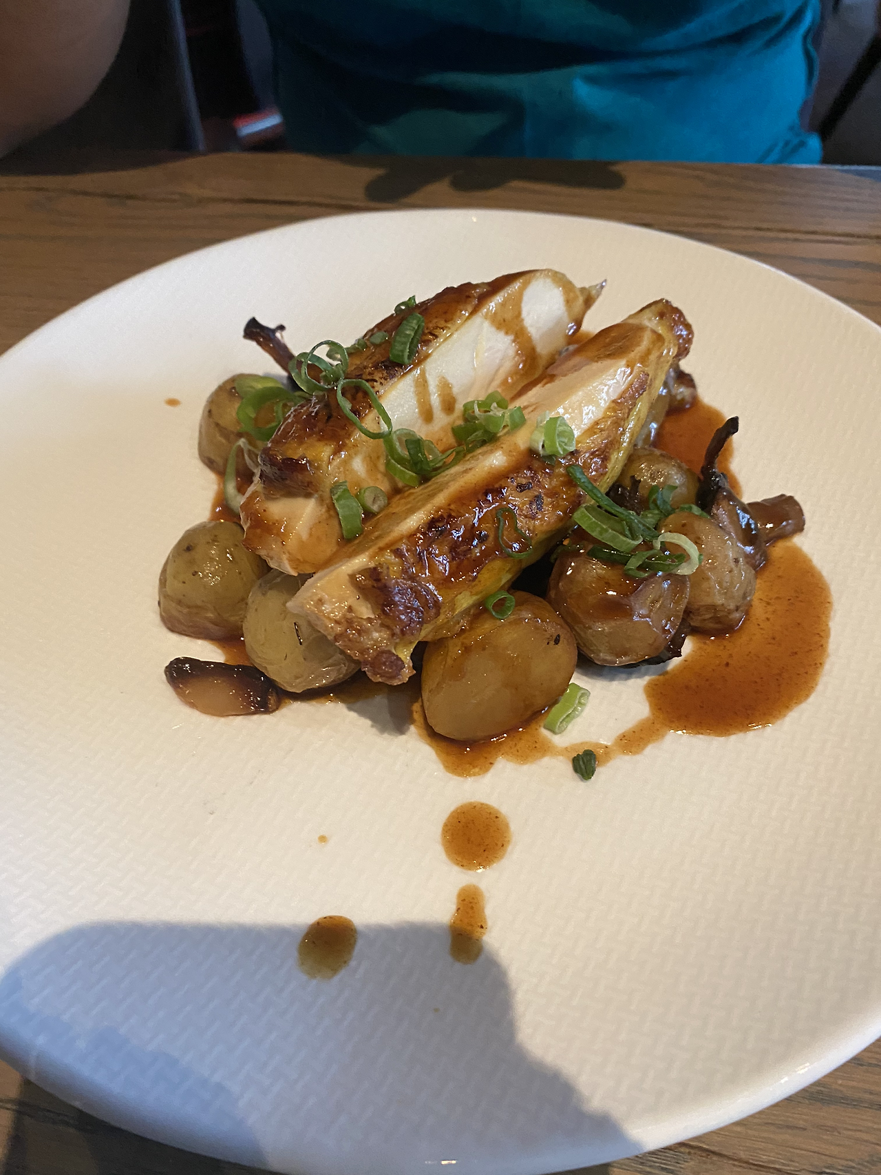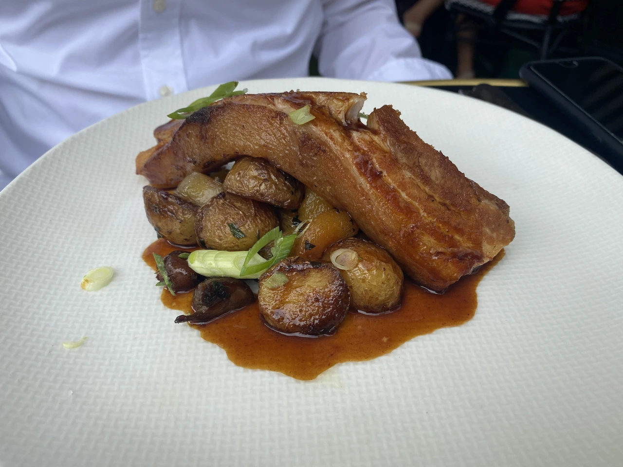 본식으로 신랑이 주문한 돼지고기 요리가 나왔다. 삼겹살을 통째로 내왔고 밑에는 통감자 조림과 무화과 같은 것이 함께 곁들여져 나왔다. 소스가 독특했다. 고기도 부드러웠다. 내가 주문한 생선 요리는 콜리플라워 무슬린을 바탕으로 생선이 구워져나왔다. 레드 와인을 소스로 곁들였다. 너트와 시금치가 곁들여져 있었다. 같이 나온 바게트 빵도 일반적인 바게트가 아닌 독특한 맛을 내는 고소한 빵이었다.