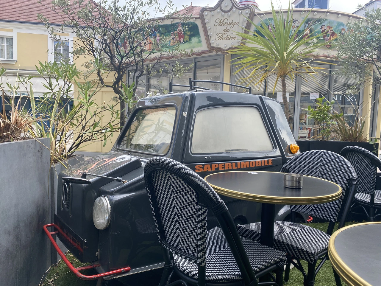 8월 1일, 아이는 드디어 방학 학교에 갈 수 있게 됐고, 아이를 보내고 우리 부부는 여유있게 퓌토를 걸어갔다. 한달 동안 24시간 아이와 붙어 있다가 아이가 없으니 이 시간이 어색하기도 하고 기쁘기도 했다. 기분좋게 식당을 들어섰다. 야외 테라스에는 이미 점심 식사를 하러 온 사람들로 가득했다. 실내에 앉을 것인지 실외에 앉을 것이지 고민하다 테라스에 앉기로 했다. 옆에는 회전목마가 있는데 이전에 우진이가 이곳에서 회전 목마를 탔었다. 야외 테라스에는 모형 자동차가 전시되어 있었다. 화장실도 매우 깨끗하며, 화장실 안에 소파가 있었다. 화장실 안에서 쉬어라는 얘기인가?