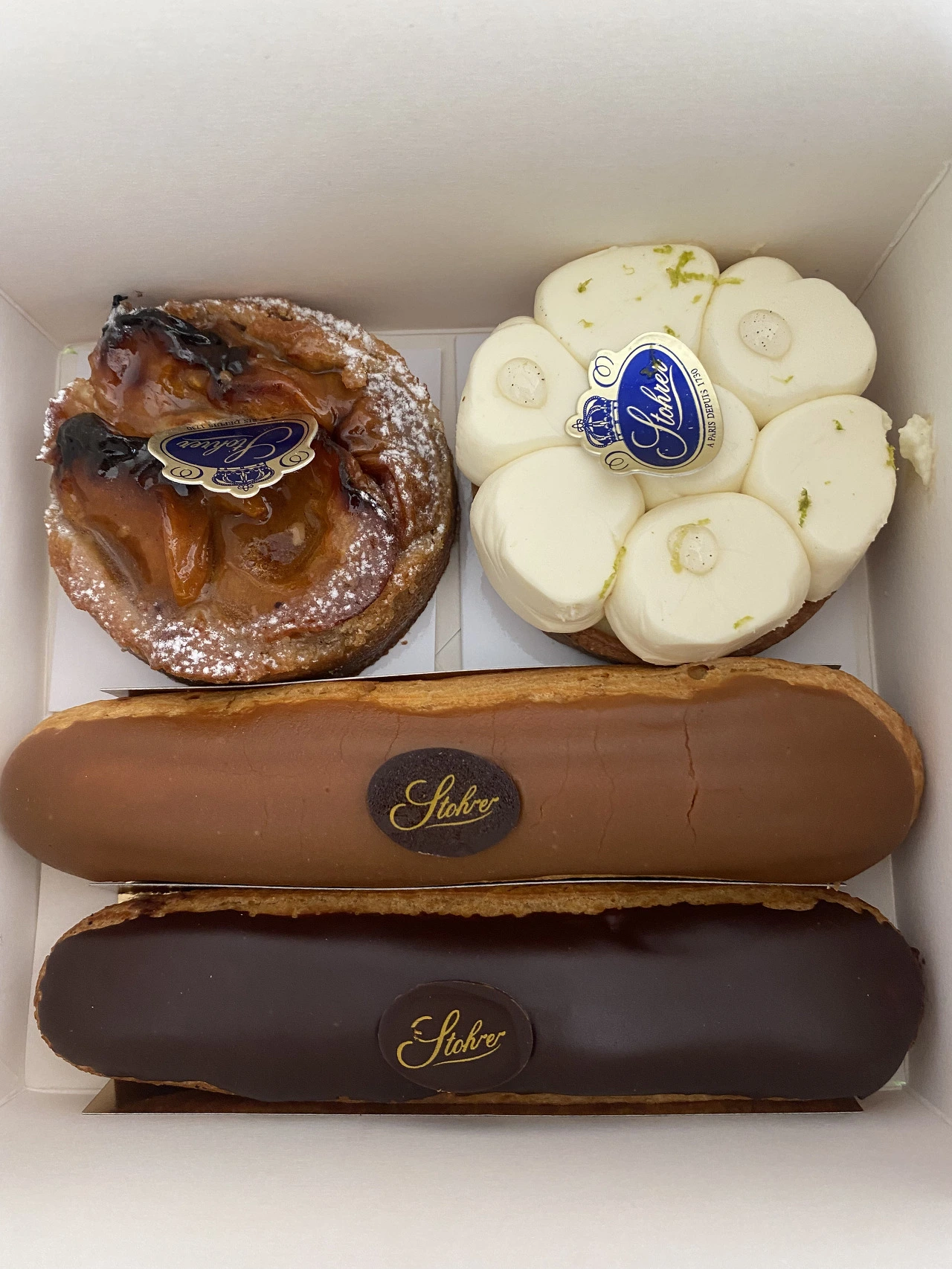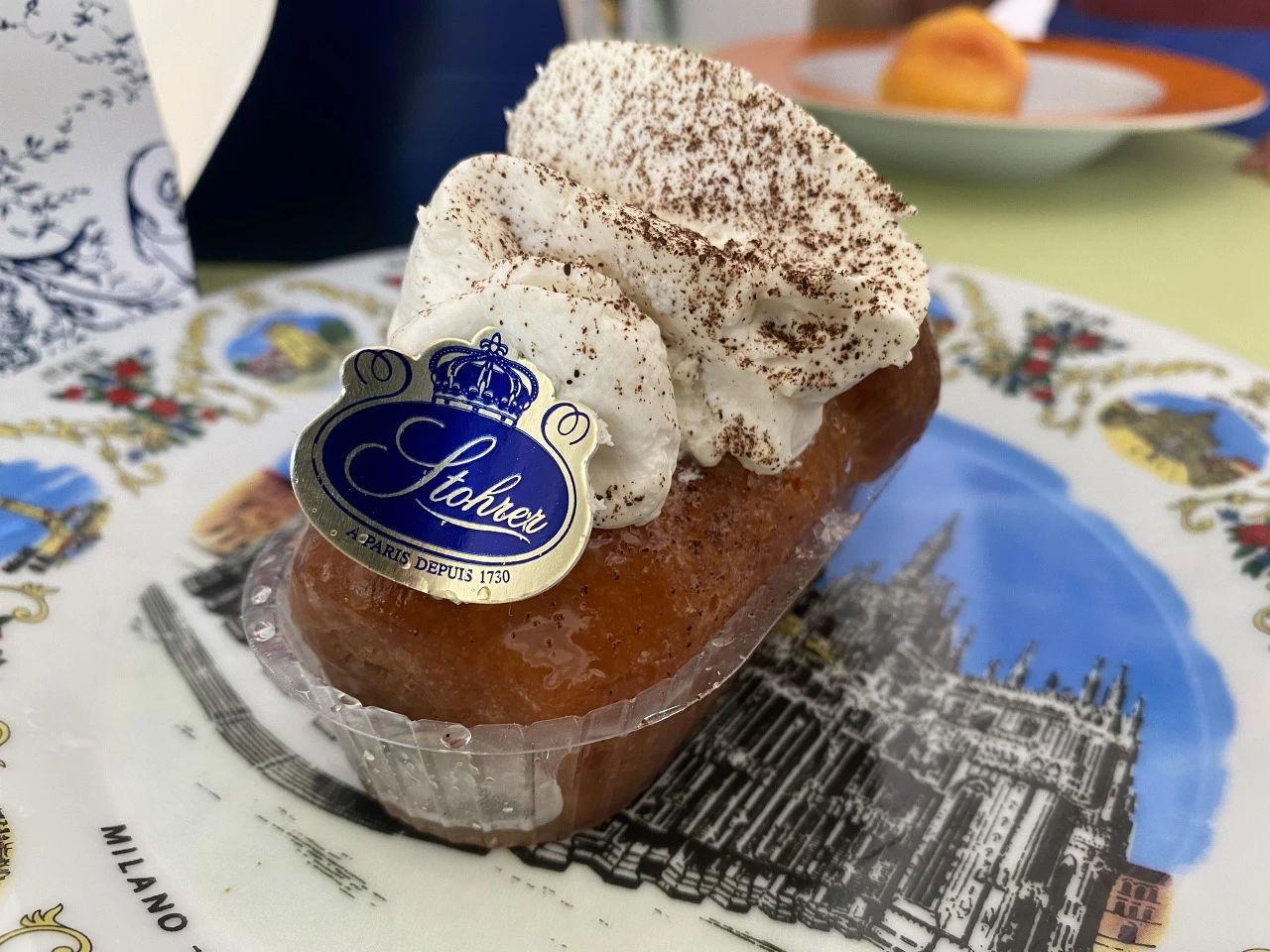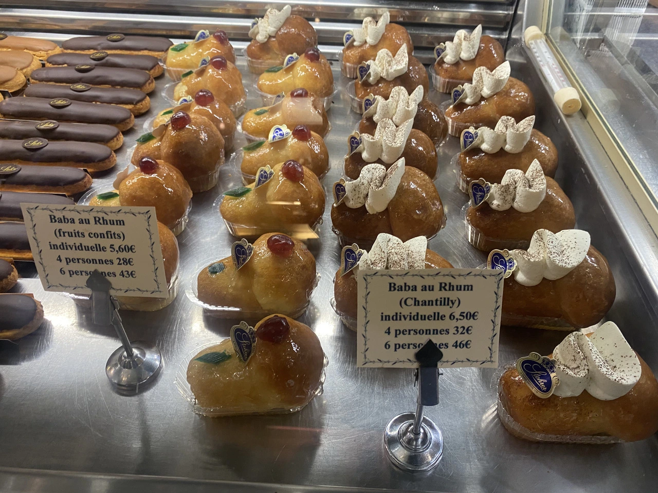 바바오럼(Baba au rhum)이라는 이름의 디저트가 바로 이곳에서 처음 시작되었다. 창업자 니콜라 스토레가 처음 개발한 디저트이다. 럼이나 버찌술을 섞은 설탕 시럽에 담궈 만든 디저트다. 바바오럼의 근원지에 왔으니 안 먹어볼 수가 없다. 일반 빵집에서 파는 바바오럼은 어떨 때는 싸구려 술맛이 나기도 하는데, 이곳은 달랐다. 지금까지 먹어본 바바오럼 중에서 가장 맛있었다. 한 개 5.6유로. 크림도 샹티이 크림을 사용해서 더욱 맛있다. 집에서 온 가족이 둘러앉아 한 개씩 맛을 보았다. 아이는 에클레어만 먹었다. 럼이 빵 곳곳에 가득 스며들었는데도 빵이 흐물거리지 않고 모양을 잘 견디고 있었다. 에클레어 초코맛과 커피맛도 모두 안에 든 크림이 매우 진하면서도 고급진 맛이었다. 디저트류를 좋아하는 신랑과는 반대로 나는 디저트 및 케익 등을 그다지 좋아하지는 않는다. 그래도 디저트가 발달하고, 디저트에 진심인 사람들의 나라에 살고 있기 때문에 다양한 디저트를 맛보려고 한다.