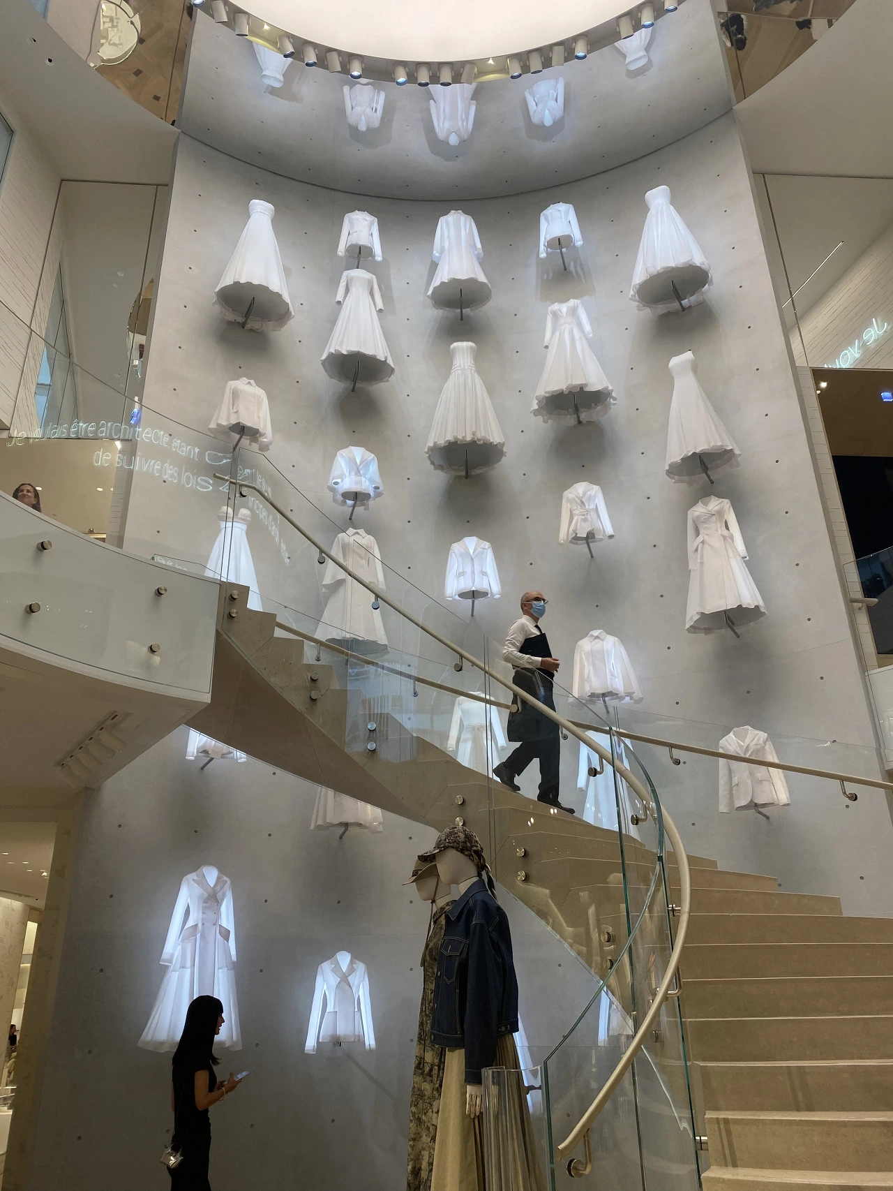 다 먹고 나니 시계는 2시 정도를 가리켰다. 근처에 디올 갤러리가 있어서 들어가 봤다. 올해 3월에 문을 열었는데, 매우 깨끗하고 규모가 컸다. 사람들로 가득했다. 단순히 디올 가방, 지갑 등만 파는 것이 아닌, 디올에서 나오는 그릇, 식기류 등 인테리어 제품이 많았다. 마치 자라 홈처럼 디올 홈을 연상하게 했다. 한 켠에는 식당을 운영하고 있었다. 샌드위치와 음료를 팔고 있었다. 메뉴판을 보니, 메뉴 이름이 디올 계란인데 가격이 48유로, 한화 6만 원 정도 했다. 계란을 먹는데 파리 명품샵에서 먹는다는 이유만으로 가격이 배로 올랐다. 샌드위치 하나도 4만 원이다. 같은 재료를 사용한 같은 음식인데, 집에서 먹느냐, 공원에서 먹느냐, 디올 매장에서 먹느냐에 따라 가격이 천차만별이다. 그만큼 어디서 어떻게 먹느냐가 최종 가격을 좌우하는 것 같다. 미슐랭 원스타 식당도 디올 식당도 모두 럭셔리하고 아름다운 분위기에서, 예쁜 식기에 담겨져서, 좋은 서비스를 받으며 우아하게 먹는 값이 더해진 결과값이다. 사람들은 모두 사진을 찍기 바빴다. 디올 매장에서 셀카를 찍기도 하고, 가방 및 향수를 구매하기도 했다. 샹젤리제 거리는 관광객으로 가득했고, 갤러리 라파예트에도 사람들이 가득했다.
