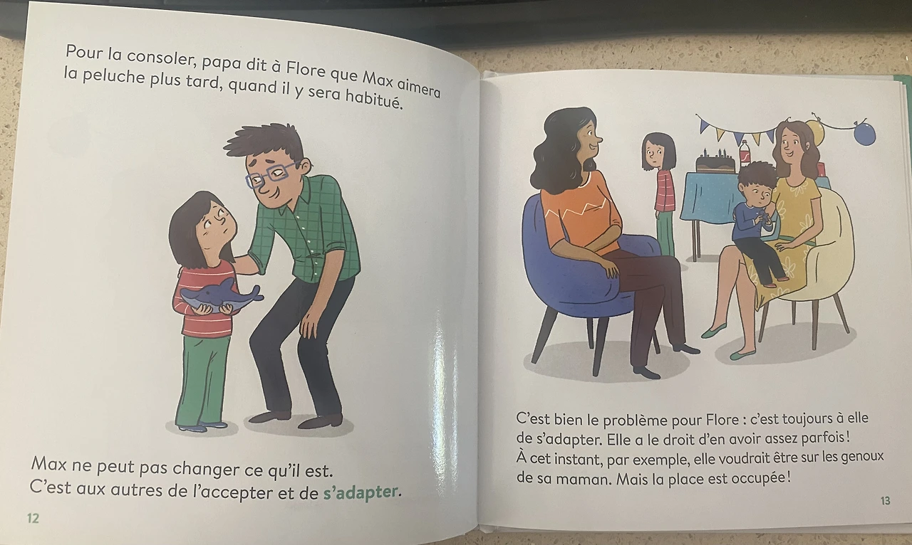 한국에서는 어떻게 보면 어린아이들은 몰라도 된다며 쉬쉬하는 주제를 프랑스에서는 만 4~7세 아이들에게 편안한 스토리를 바탕으로 이 주제를 알려주고 있다. 이혼, 죽음, 자폐, 청각 장애 등 일상 속에서 마주할 수 있는 주제와 친구들이다. 아이들은 이런 책을 부모와 함께 읽으면서 내 주변 세계를 조금 더 이해할 수 있게 된다.