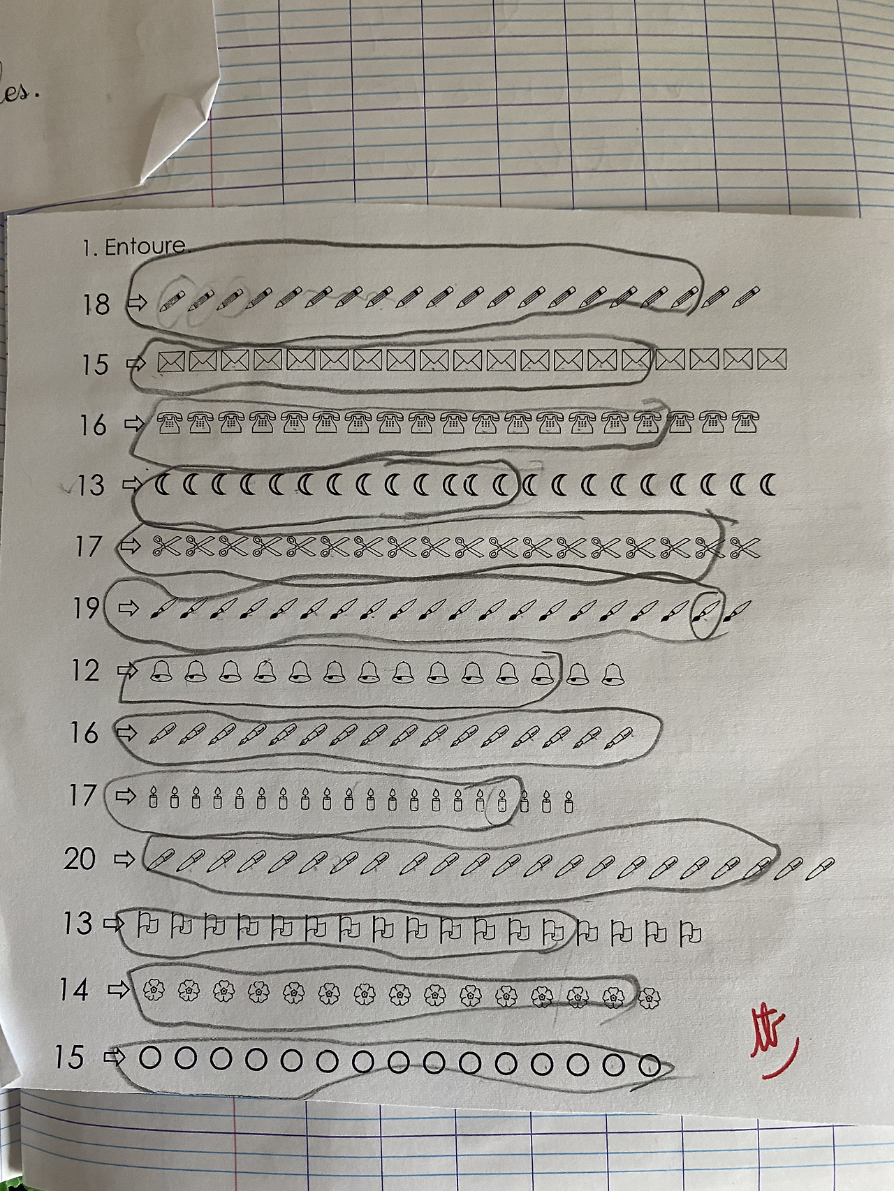 한국 사람들이 왜 수학을 잘하는지 알 것 같다. 한국 초등 1학년 학생들은 어느 정도 수준의 산수 또는 수학 문제를 접하는지 모르겠지만, 이곳 프랑스는 산수 난이도가 조금 낮은 게 아닌가 싶다. 구슬 10개를 동그라미 하세요, 18 앞에는 어떤 숫자가 와야 하지요, 이 정도 숙제를 내주고 있다. 내 어릴 적 하던 눈높이 수학, 빨간펜 등 학습지를 따로 하는 것도 아니고, 수학 학원을 따로 다니는 것도 아니기 때문에 공교육에서 하는 산수 및 수학이 전부인데. 과연 다른 집들은 따로 수학 과외를 하는지 모르겠다. 하지만 한국에 비해 과외하는 문화도 확연히 덜하기 때문에 초등 1학년 수학 수준은 한국에 비해 낮을 것 같다.