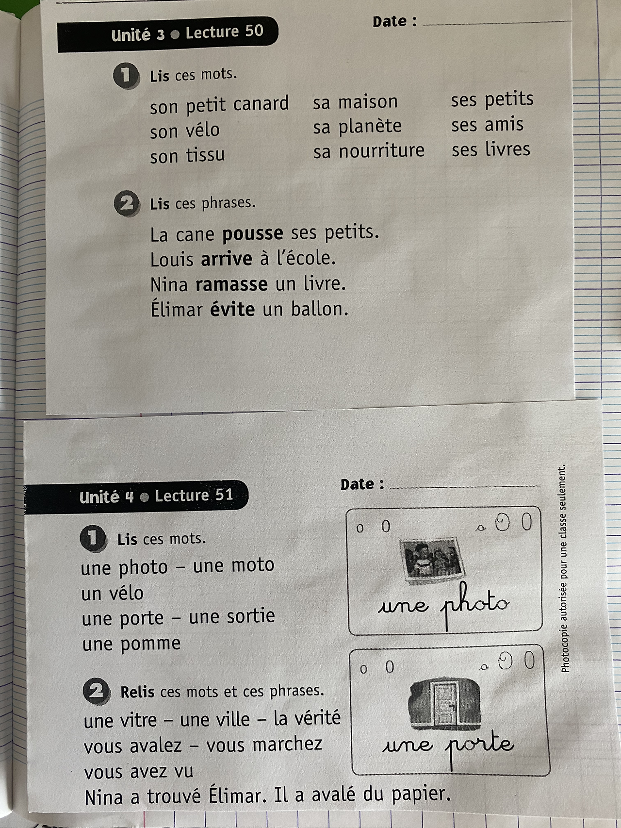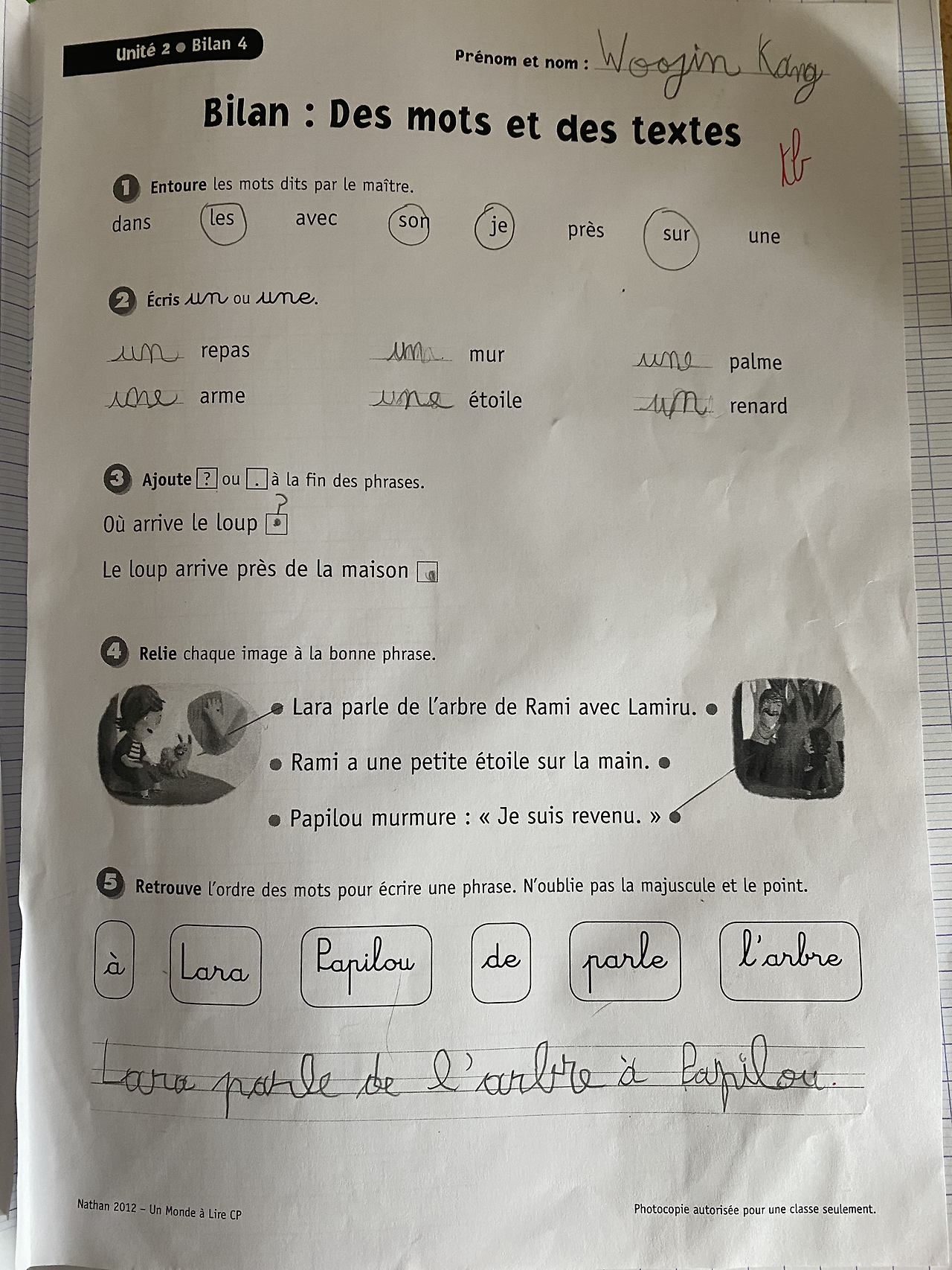 매일 숙제가 있다. 주로 그날 배운 프랑스어 단어와 문장을 읽기와 산수 문제이다. 그런데 숙제 양이 매우 작다. 5분이면 끝난다. 한국은 숙제 양이 얼마 정도 인지 모르겠지만 이곳은 적은 편이다. 게다가 이곳은 학교 마치고 학원도 따로 안 다니기 때문에 공부량이 확연히 적다는 것을 알 수 있다. 그래서 프랑스의 학업 성취도가 하향 평준화되고 있다는 말이 맞는 것 같다. 공부량에 있어 확실히 한국에 비해 적다. 그래도 100일 만에 읽기가 가능해졌다는 것은 참으로 놀라운 일이다.
