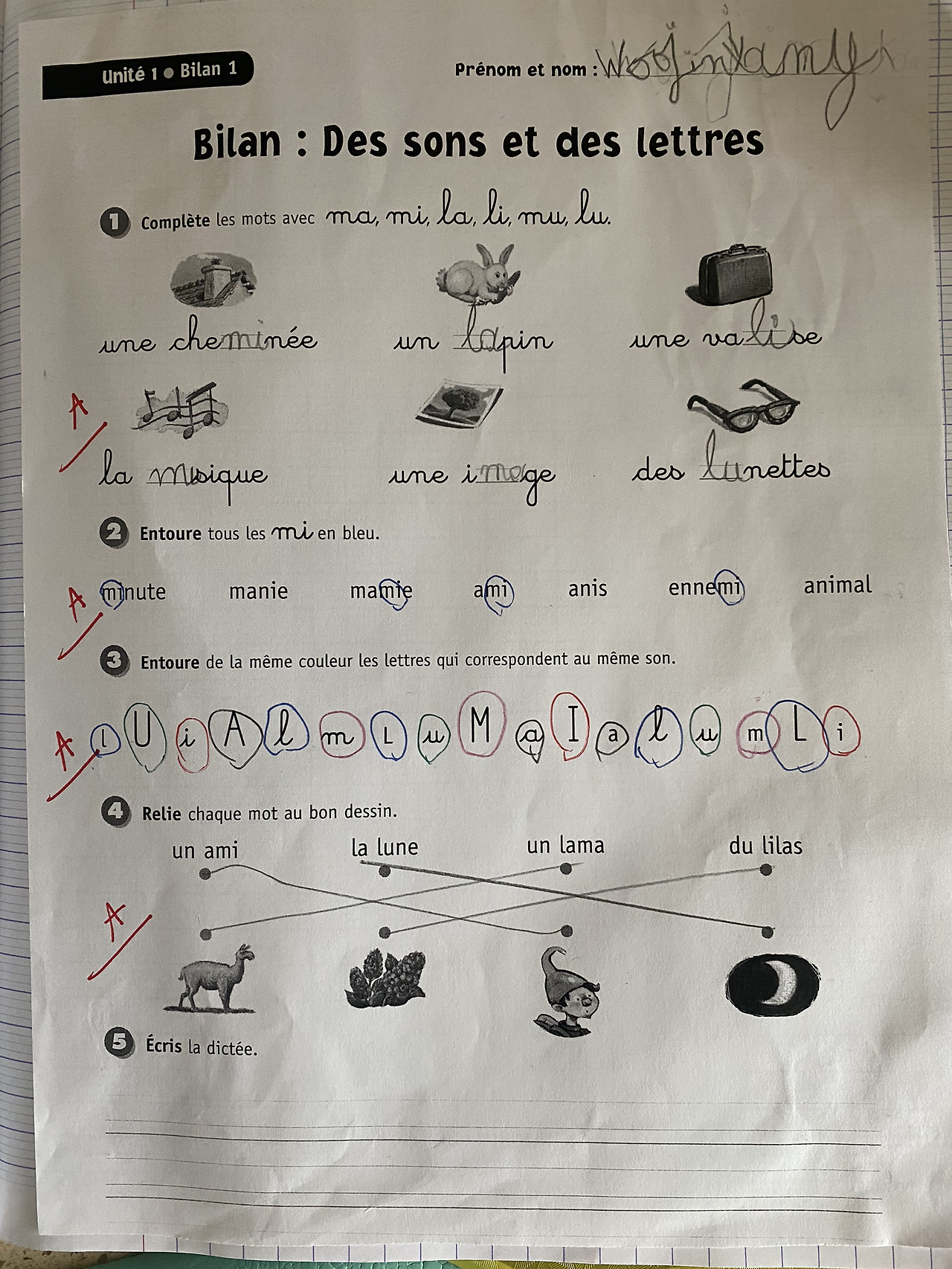 며칠 전 일이었다. 초록색 노트에는 늘 그날 매일의 숙제가 적혀있는데, 숙제에 평가지에 부모님 사인받아오기가 있었다. 평가라고? 나는 이 평가가 무엇을 의미하는 것인지 몰랐다. Evaluation이라고 적힌 종이를 찾아봐도 없었다. 몇 주 전에도 이런 문장이 있었는데, 같은 반 엄마에게 직접 물어보니 자기도 모르겠다고 해서 별것 아닌가 보다 해서 그냥 넘겼다. 이번에 또 평가 사인하라는 말에 학부모 단체 채팅방에 용기 내서 질문을 올렸다. 친절하게 무엇을 의미하는지 알려준 엄마 덕분에 알게 됐다. Bilan이라고 적힌 종이에 있는 각 문제마다 옆에 A, B, C가 적혀 있었다. 지금까지 이 종이가 5장 있었다. Bilan이란 뜻이 대차대조표, 실적이란 뜻인데 그저 evaluation이란 단어가 찾아봤기에 내가 몰랐던 것이다.