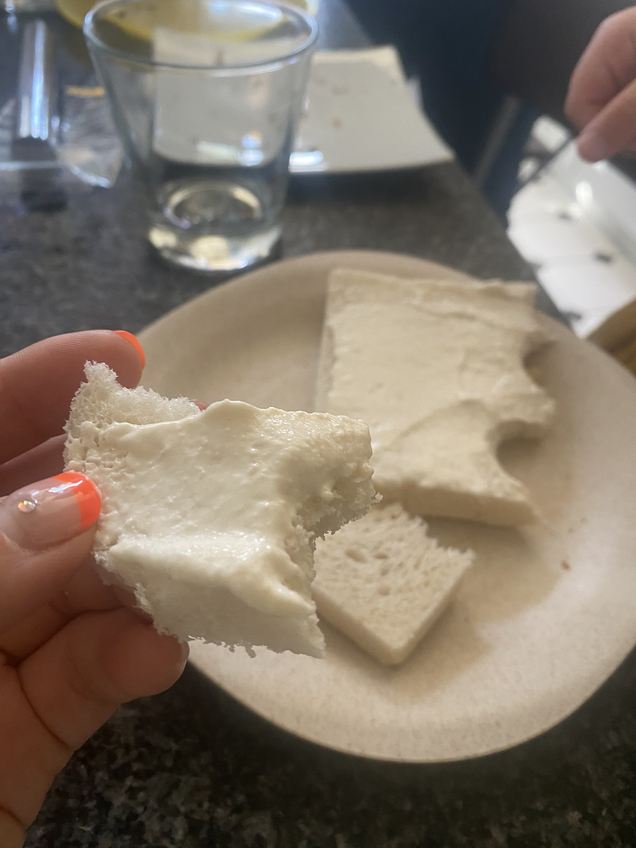 그리고 함께 커피를 마시면서 이런저런 이야기를 나눴다. 아이들에게 빵에 하얀색 크림을 발라주길래 뭐냐고 물으니, 흰 생선살을 갈아서 만든 것인데 쨈처럼 발라먹는다고 했다. 생선살을 발라먹는다고? 으. 느끼할 것 같은데. 한번 맛을 보여주길래 먹어 봤는데 생각보다 맛이 좋았다. 이것은 아이들 건강에도 참 좋을 것 같다. 유대인들이 먹는 음식인가? 아무튼 영양도 좋고, 맛도 좋고, 딸들이 식빵에 쓱쓱 발라서 잘도 먹었다. 딸들에게 지극정성인 유대인 엄마이다. 참깨 디저트를 집에 가져와서 신랑과 먹기로 했다. 유대인들은 코셔 인증 식품만 먹는데, 덕분에 코셔 인증 식품을 경험해본다.