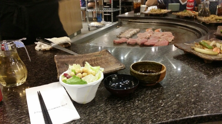일본식 요리점에 들어갔다. 불판이 바로 앞에 있어서 아기랑 가면 안될 것 같지만, 괜찮다. 부부가 교대로 식사를 하면 된다. 한 명이 식사를 하면 다른 한 명은 바로 옆에 있는 매장 구경을 하면 된다. 아기띠를 한 채로. 아기도 세상 구경에 눈이 반짝이고, 나도 눈이 반짝인다. 그러다 바통 터치해서 혼자 오롯이 식사에 집중한다. 둘이 꼭 같이 먹을 필요는 없다.
