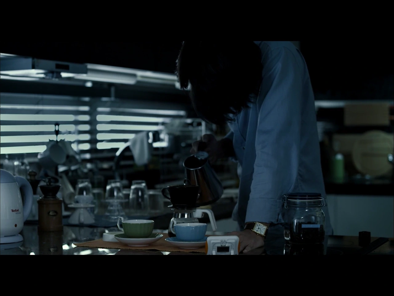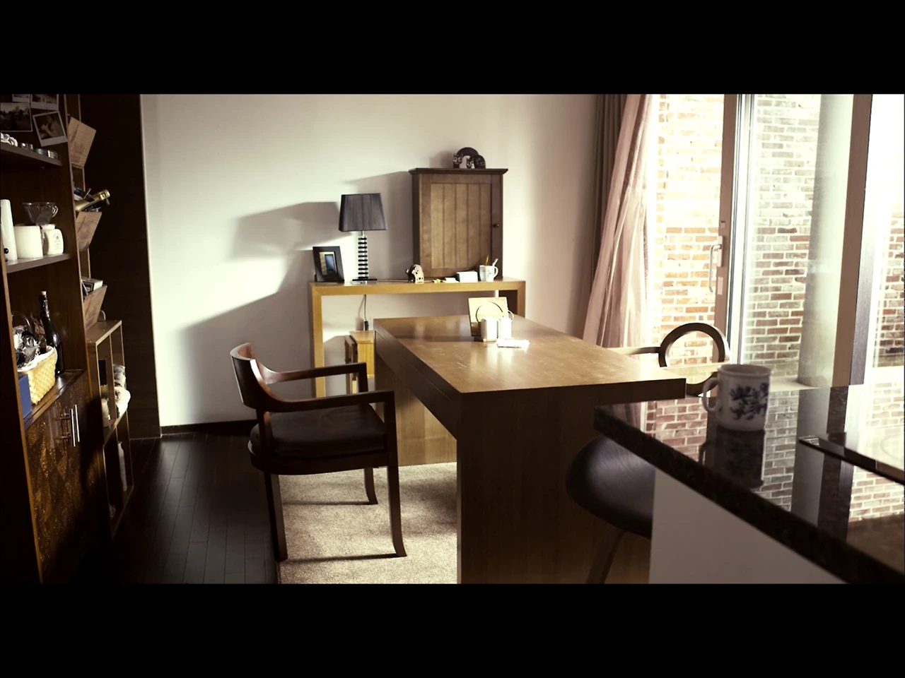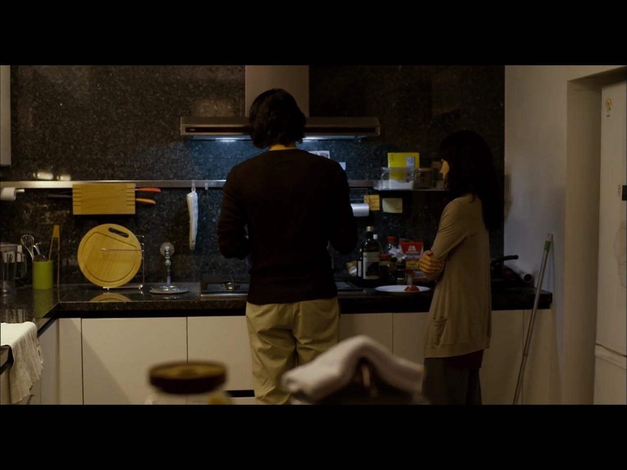 영화 처음 부분에서 지석은 부엌의 아일랜드 식탁에서 커피를 내리고 있다. 중간에서는 영신과 지석이 머핀과 커피를 먹고 마시며 얘기한다. 마지막은 함께 파스타를 만든다. 아일랜드 식탁 위의 커피 잔, 주전자, 타이머, 테이블 매트. 냉장고에 붙인 포스트잇과 사진들. 적당한 살림들로 채워진 부엌은 영신과 지석의 흔적이 가득하다.