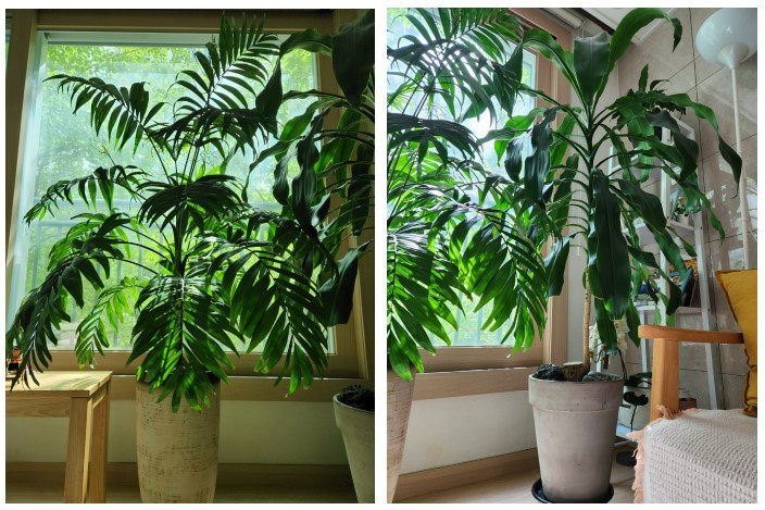 그렇게 위로를 받다가 그녀 집 창가에 있는 커다란 화분을 보았다. 싱그럽게 잘 자라고 있는 식물을 보며 칭찬했는데 너무 놀라운 이야기를 들었다. 10년 전에 작은 포트에 담겨 있던 아이들이 자라서 그렇게 커다랗고 멋진 청년들이 된 것이다. 감동적이었다. 테이블야자와 행운목. 테이블 야자는 테이블에서 자랄 만큼 작고 아담한 야자라는 거다. 그런데 이렇게 크다니! 행운목도 얼마나 앙증맞은 녀석인지... 그런데 이렇게 크게 키운 것이다. 식물을 키워 본 사람은 안다. 그런 작은 녀석들을 저렇게 크게 키워내기가 얼마나 어려운 일인지. 나는 식물을 너무 사랑하지만 사랑이 너무 지나쳐 저 세상으로 보낸 적이 너무나 많다. 테이블야자도 행운목도 내 손을 많이 거쳐갔다...ㅠㅠ