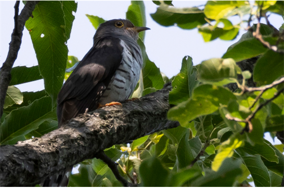 뻐꾸기과의 새인 호토토기스가 벚나무 가지에 착륙했습니다.