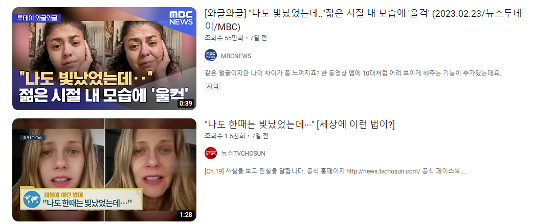 나의 젊은 시절 얼굴을 보여주는 페이스앱 후기