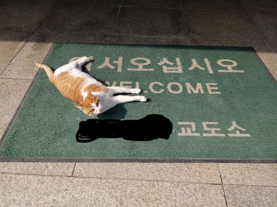 출퇴근하는 나를 반갑게 맞이하고 보내주는 불청객(자기는 그냥 혼자 놀고 있는 것일 수 도있다.)에게 나도 소소한 정이 생기기 시작했다. 점심시간 쉬는 시간마다 찾아다녔고, 장 카미유(기욤 미소의 <구해줘>라는 소설에 등장하는 고양이 이름)라는 이름도 지워줬다. 어느덧 내게 등 쓰다듬는 것을 허락하는데, 나도 인정받았다는 느낌이 들어 감격스러웠다.