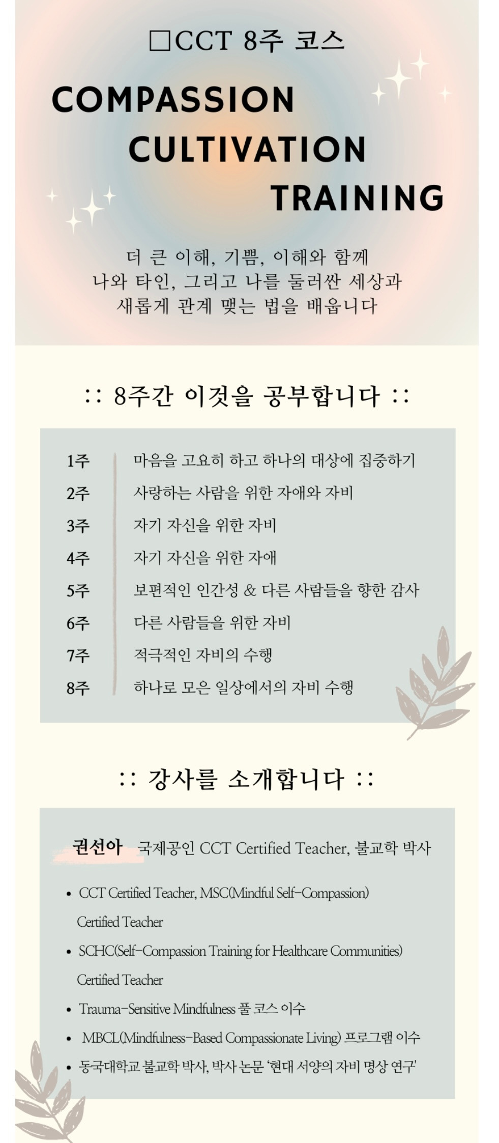 -> 자비의 정의와 구성요소를 구체적으로 알아가면서, 나에게 그리고 사람들에게 자비를 보낼 수 있는 가능성도 높아진다.