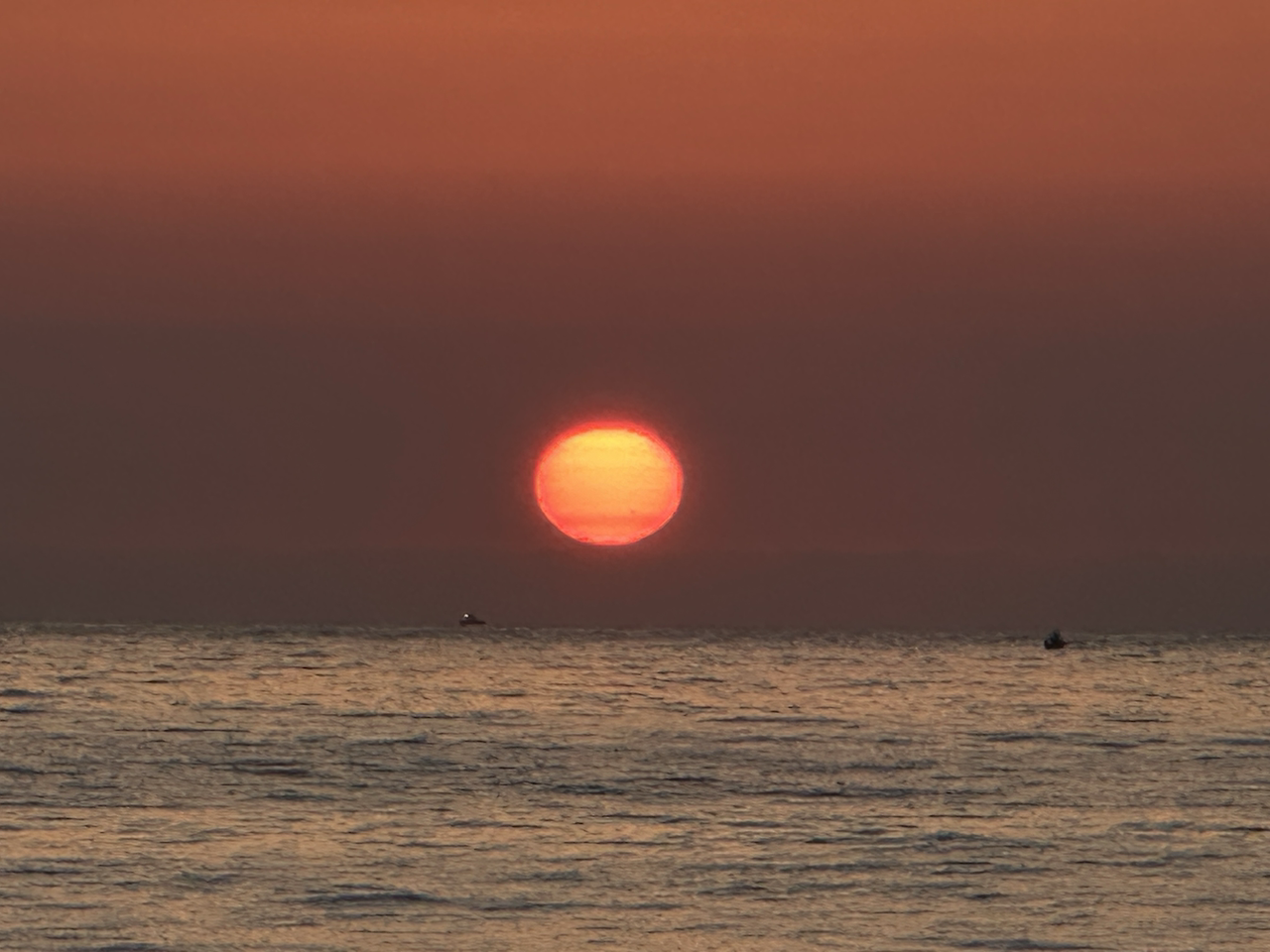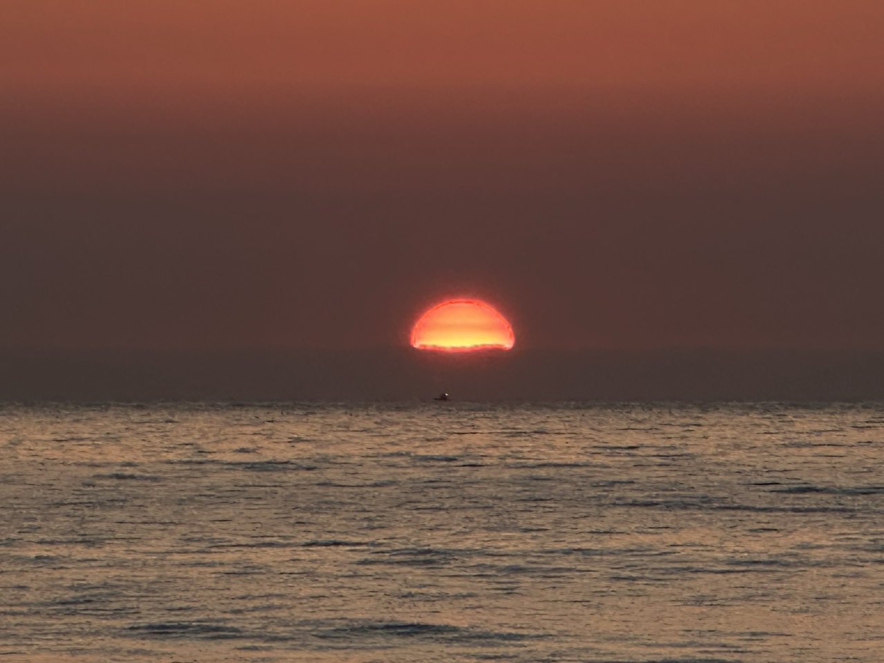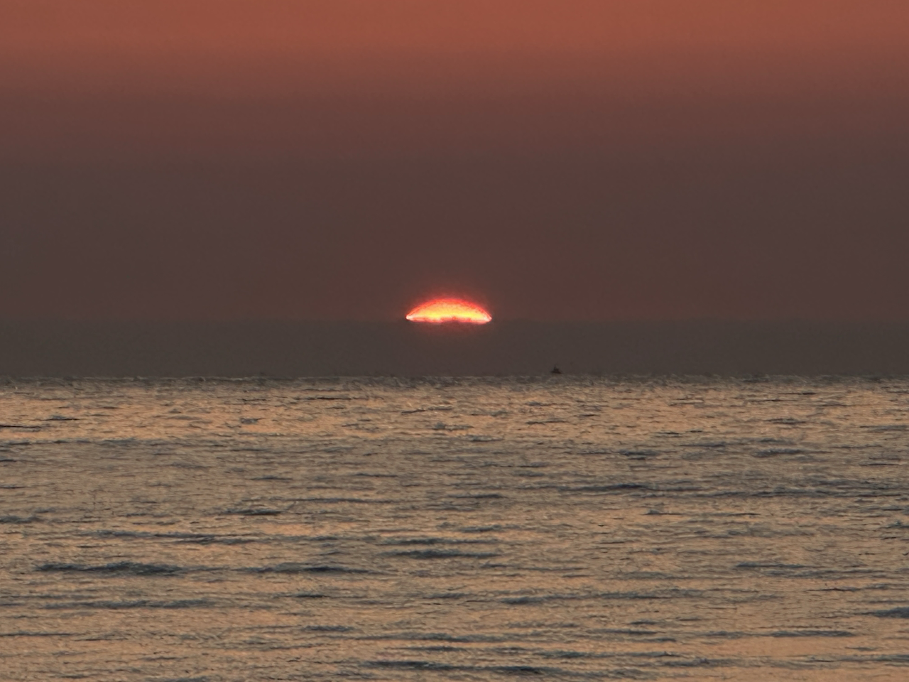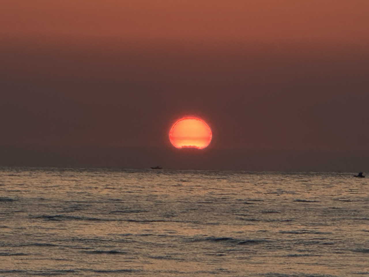 바다와 하늘이 접한 부분이 붉게 물든다.