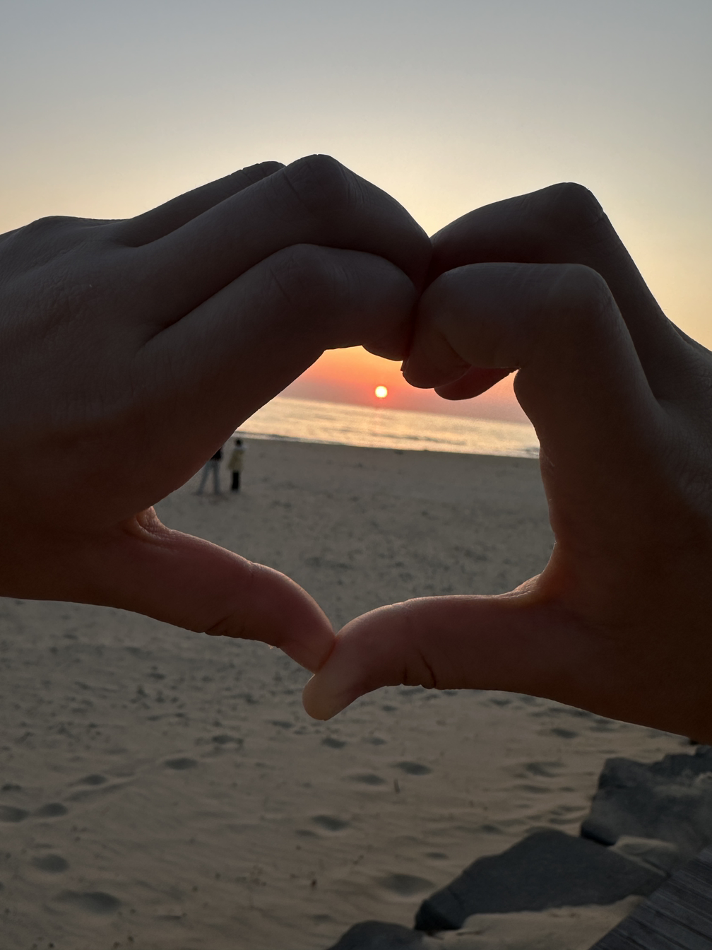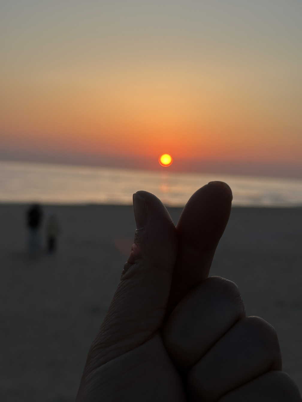 두 손으로 하트를 만들어 해를 가두어 본다.