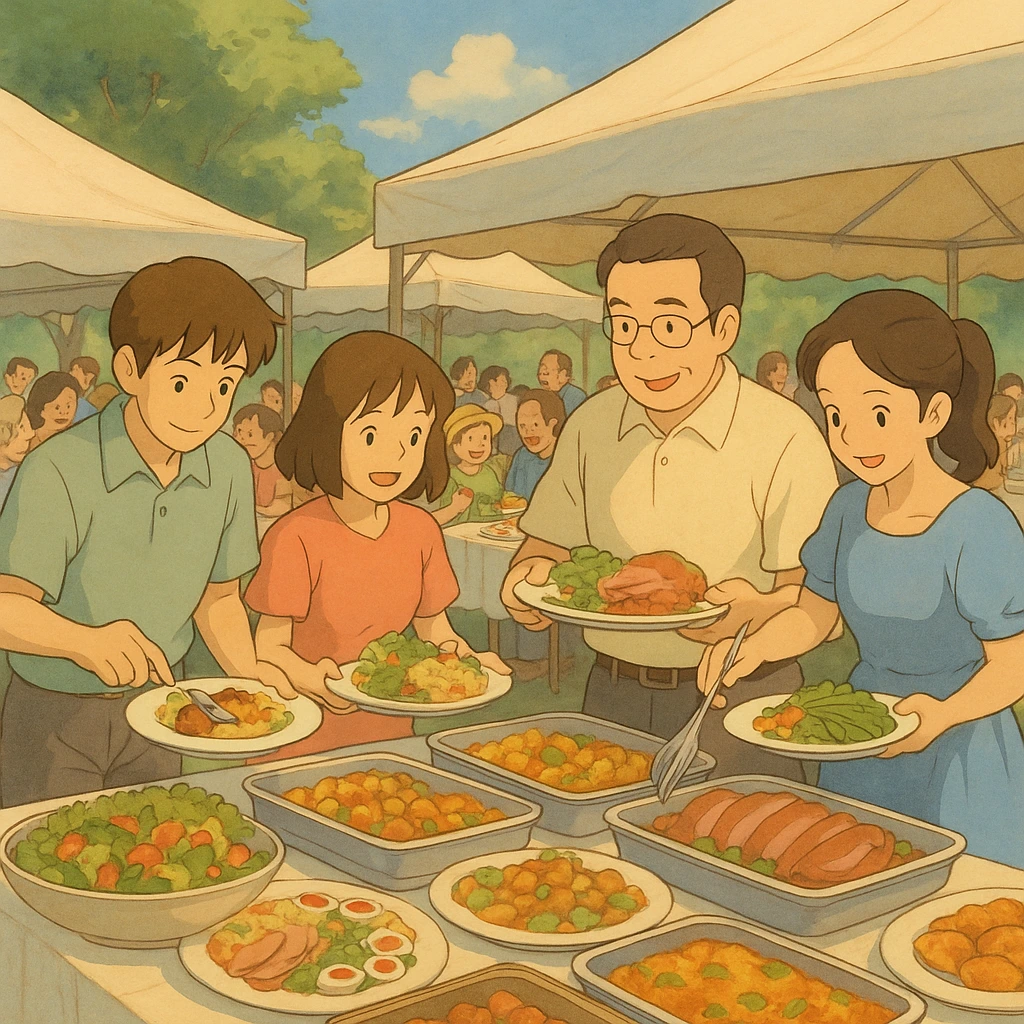 성당마당에 봉사자분들이 미리 테이블을 세팅해 두셨고, 구역별로 질서 있게 음식을 담다 보니 그 많던 사람들이 모두 함께 식사할 수 있었다. 음식도 맛있었지만 무엇보다 사람들 사이를 가득 채운 따뜻한 에너지가 내 마음 깊숙이 전해졌다. 모두가 한마음이 되는 시간, 모두가 선하고 다정한 얼굴이었다.