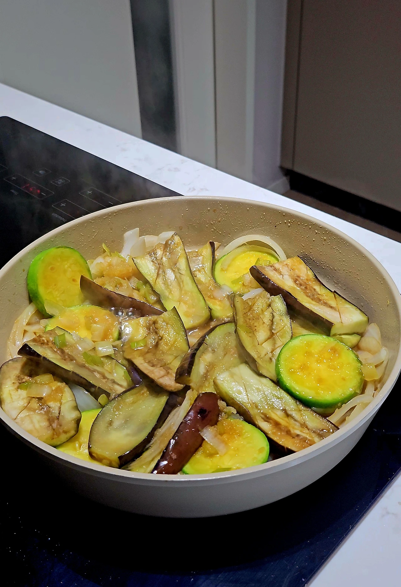 그러다 날이 더워지자 슬슬 귀찮아져서 관둬버렸다. 그리고는 까맣게 잊고 있었다. 오늘 점심에 요즘 외식이 잦았으니 집밥을 먹어야겠다는 생각에 냉장고를 열었더니 며칠 전 사다 둔 가지와 애호박이 보였다. 냉동실에 밥도 있으니 가지호박 덮밥을 만들기로 했다. 그러자 다시 찍어볼까 하는 마음이 스멀스멀 올라왔다. '그래, 포기한 게 아니라 잠시 쉬었던 거였지. 일단 찍어 두자. 마음이 동하면 편집해서 올리면 되니까.'