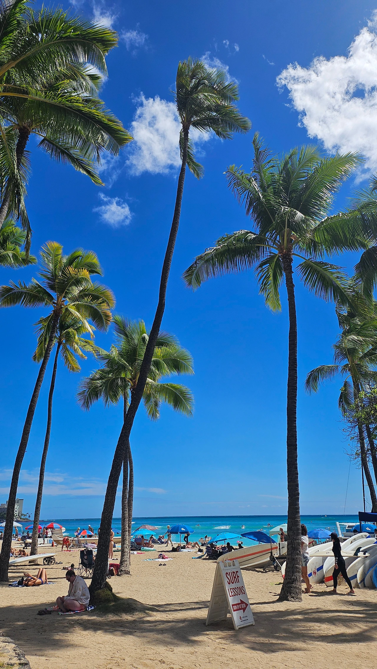 와이키키 해변은 사진과 영상으로 수없이 보아왔지만, 실제로 마주하니 감탄이 절로 나온다. 파란 하늘, 아름드리 나무들, 길게 뻗은 야자수. 그 중 제일은 멋진 바다!