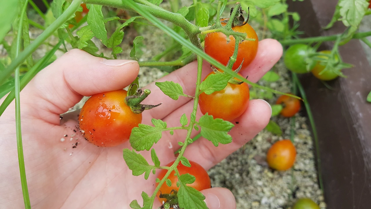 뒷화분을 정글로 만들어 가고 있는 친구도 있다. 보석보다 예쁜 색깔을 자랑하는 방울토마토이다. 곁순을 따주고 지지대를 세워줘야 하는데 그냥 자라게 두었더니 천방지축이 따로 없다. 다른 식물 친구들에게 어찌나 기대고 치근덕대는지 다른 화분까지 제 집인 줄 안다. 너무 오냐오냐 키웠나 싶어 눈치 없이 자란 부분은 좀 정리를 해주었다.