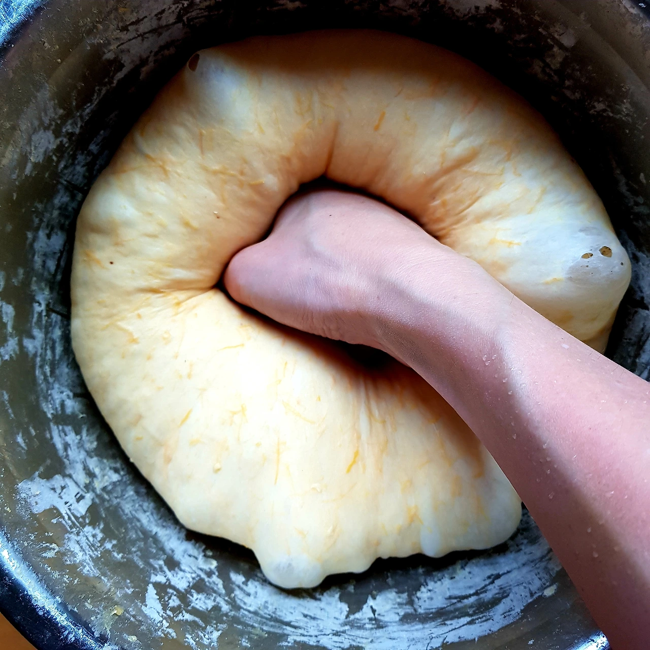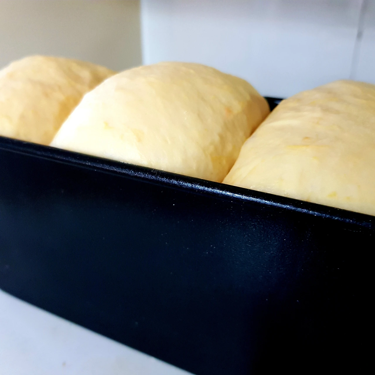 익혀서 식힌 호박을 밀가루에 넣어 치대다 보면 노란빛의 반죽이 매끄러워진다. 이제 이스트가 제 역할을 하도록 기다리는 동안 느긋하게 내 할 일 하면 된다. 그러다 반죽이 2배 이상 부풀면 반죽에 가득 들어찬 가스를 한 번 빼주고 3 덩이로 나눈다. 빵틀에 넣어 3개의 낮은 산을 만들고 또 한 번의 기다림을 참아내면 이제 뜨거운 오븐으로 넣을 차례다. 호박을 많이 넣으니 빵반죽에서 달콤한 냄새가 진동을 한다.