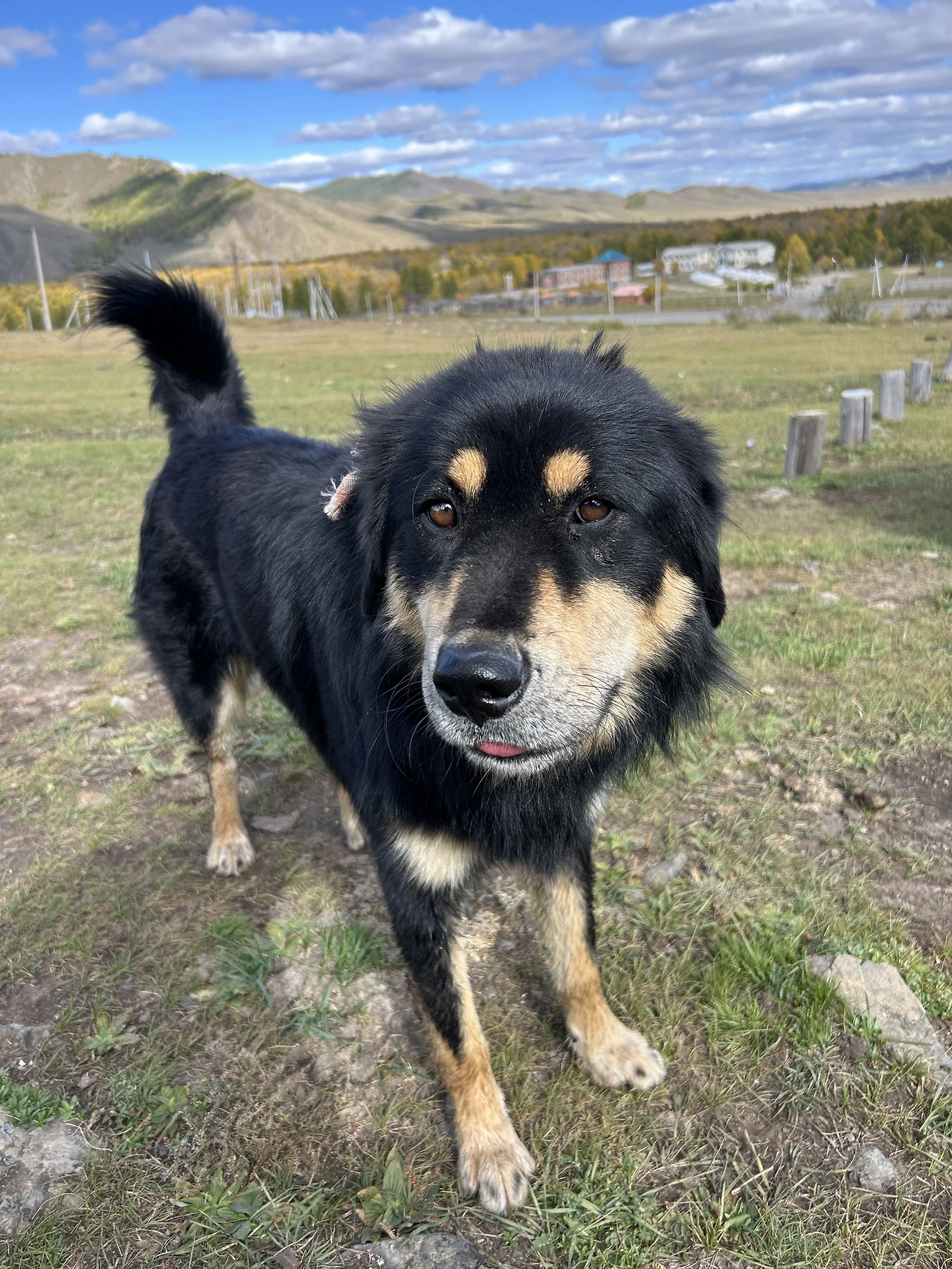 동생이 혹시 입맛에 맞지 않을까봐 고추장 튜브를 가져와서 앞접시에 미리 짜두었는데, 허르헉을 먹는 동안 거의 찍어먹지 않았고, 식사 말미에 감자 맛이 단조로워질쯤 싹 긁어서 마무리했다. 어른들은 서로 이야기를 하며 먹다보니 식사가 늦어졌고, 나와 동생은 할당 분의 식사를 마친 후 밖으로 나와 게르 주변을 돌아다니며 동물 구경을 했다. 바깥에는 아까 내쫓김 당한 고양이가 어슬렁거리고 있었고, 그 고양이는 신경도 안 쓰는 듯한 강아지 한 마리가 볕을 쬐며 잠을 자고 있었다. 우리 숙소에 어슬렁거리던 강아지와는 다르게 생겼는데, 자세히 살펴보니 눈 위에 또 다른 눈처럼 보이는 갈색 점이 찍혀있었다. 이 강아지가 바로 그 유명한 몽골 전통 개인 방카르 인 것 같았다. 강아지에게 말을 걸어보았지만 내가 알고 있는 소형견과는 다르게 의젓해 보였다. 귀여운 방카르는 우리의 인사 소리에 살짝 실눈을 뜨고 바라보다가 도로 눈을 감았다. 반응 없는 강아지의 행동에 살짝 민망해진 우리는 말이 있는 마굿간을 구경하기도 했고, 울타리에 앉아있는 까마귀를 가르키며 어느 까마귀가 더 큰지 이야기하기도 했다.