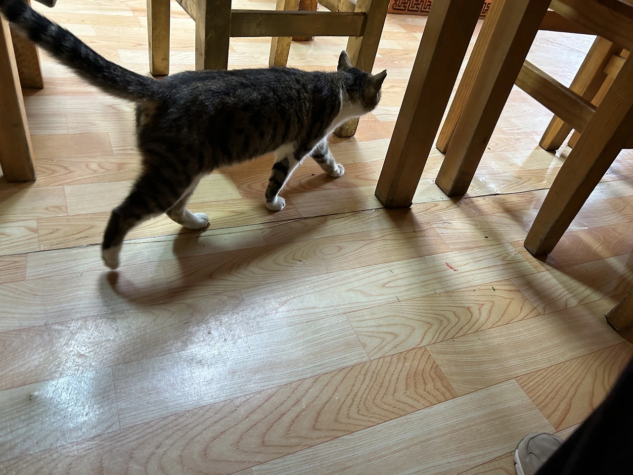 가이드님의 설명을 듣다보니 음식이 나왔다. 우리는 밑반찬이 깔리고 주메뉴가 나왔는데 몽골은 바로 주메뉴가 나온다는 점이 색달랐다. 테이블마다 허르헉이 깔렸고, 마지막 접시를 들고 들어오는 아주머니 뒤로 고양이 한 마리가 따라 들어왔다가, 음식을 테이블에 올려두고 게르를 나가시는 아주머니의 손에 붙잡혀 퇴장한 모습이 글을 쓰는데 갑자기 떠올랐다. 어찌됐든 고기가 상에 올라왔고 한 조각씩 각자의 앞접시에 덜어가서 맛을 보았다. 양고기는 먹을 때마다 특유의 냄새가 났는데 이 허르헉에서는 그 냄새가 나지 않았다. 나중에 가이드님이 설명해주시기를, 보통 관광 식당에서 허르헉을 먹는다면 냉동 양고기를 사용해서 잡내가 나기도 하는데, 이 가정집은 냉동으로 보관한 고기를 쓰지 않아서 냄새도 없기 때문에 본인은 이 곳을 손님들께 주로 안내한다고 말씀주셨다.