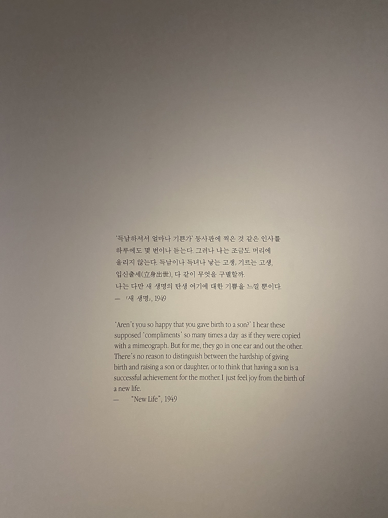1920년에 태어나 일본에서 유학한 미대언니였고, 신랑감이 청각장애인이라는 이유로 끝끝내 부모가 반대한 결혼을 밀어붙인 걸크러쉬. 전시 초반에 소개된 그의 결혼의 변을 보자.